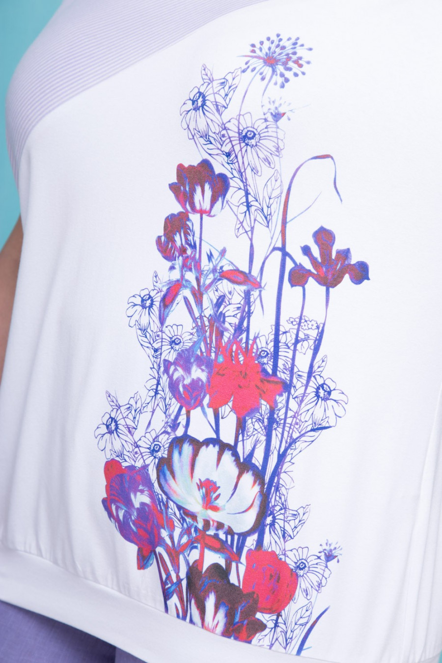 Блузка женская ArtRibbon, полуприлегающего силуэта, из вискозного полотна. Блузка с цельнокроенным рукавом, низ обработан притачной манжетой. По переду диагональный подрез - верхняя деталь из полосатой вискозы. Горловина обработана притачной планкой. Низ блузки с притачным поясом.