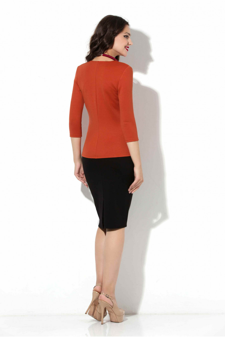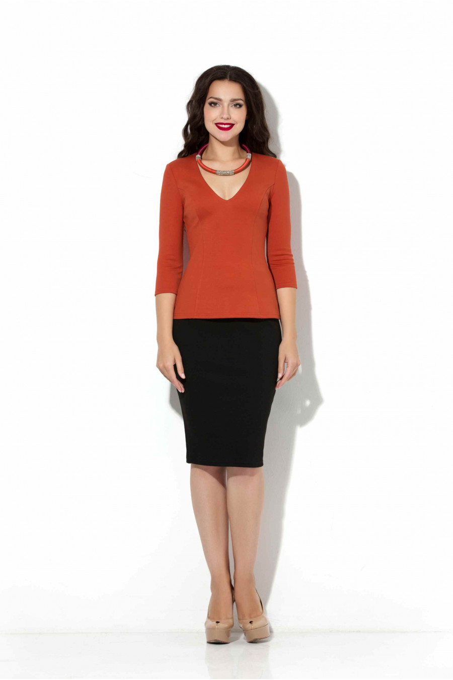 Блуза Donna-Saggia DSB-30-21t""Блуза прилегающего силуэта из плотного трикотажа «джерси». Силуэт блузы достигнут благодаря рельефам на полочке и спинки и боковым швам. Рукав втачной узкий, длинной 3/4. Вырез горловины глубокий V-образный. Длина – 57-59 см (зависит от размера).""
