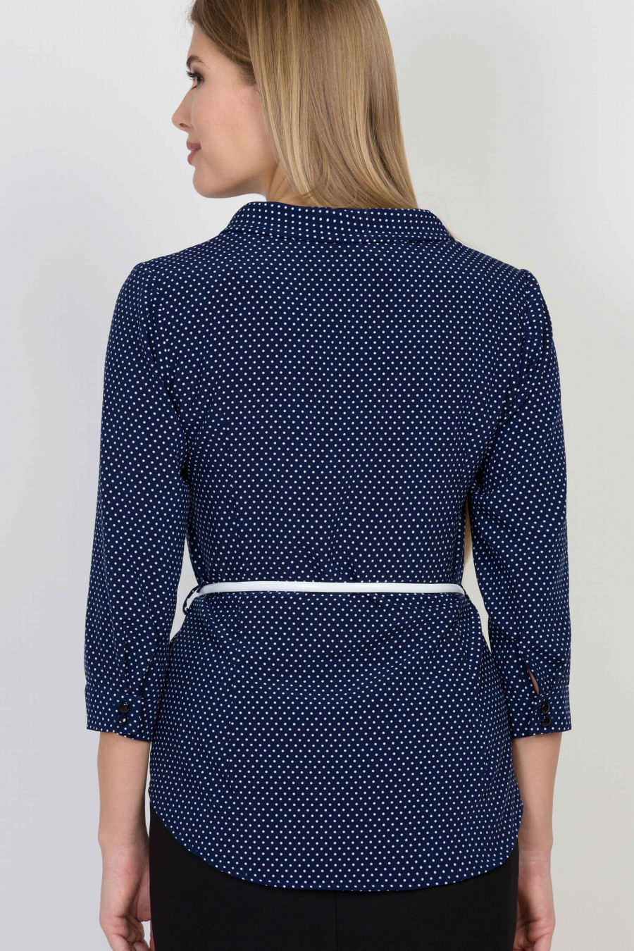 Стильная блузка с застежкой на молнию на спинке изделия, с орининальным воротником с длинными рукавами. Модель выполнена в классическом дизайне. Покрой приталенный. Ремень продается отдельно.