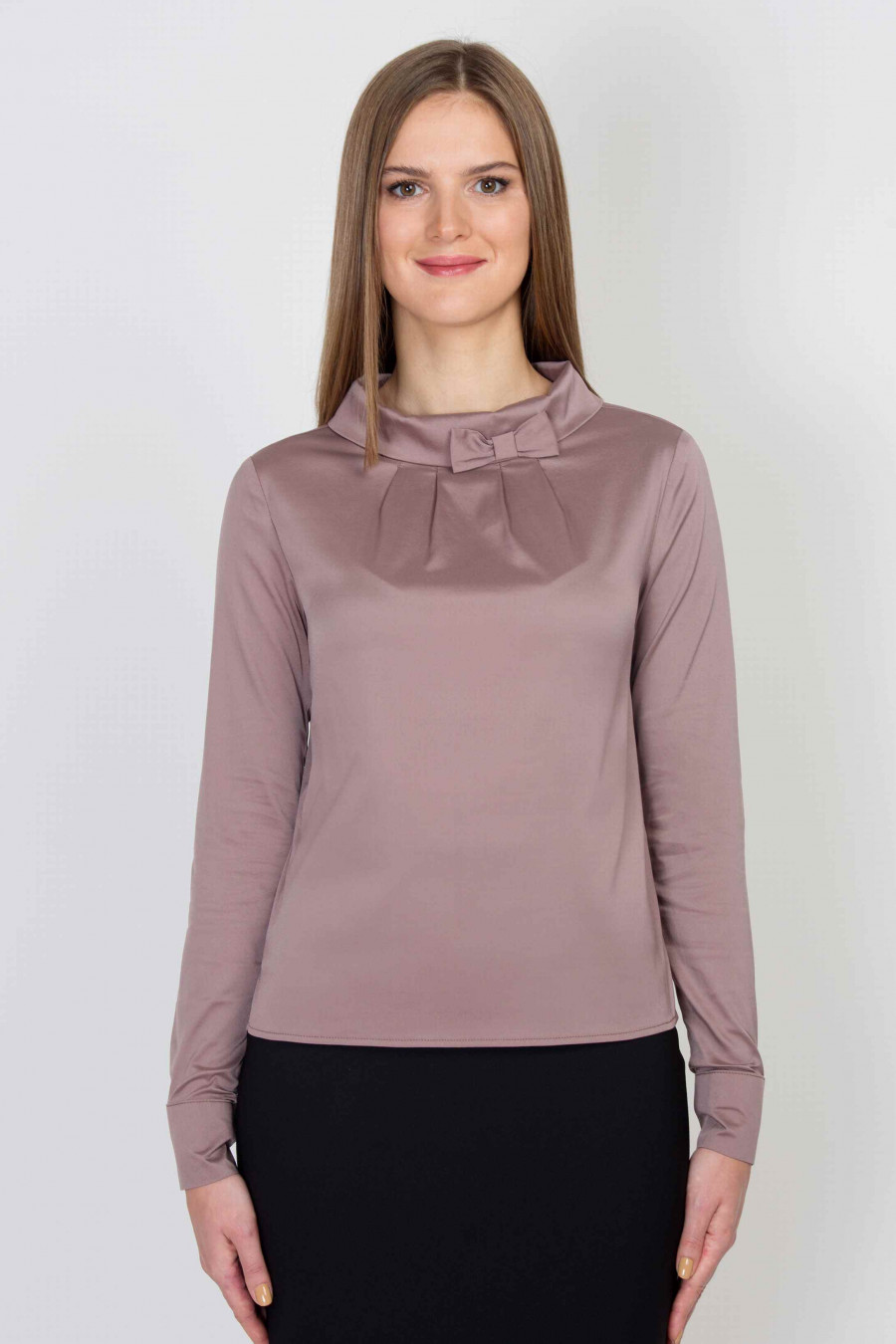 Стильная блузка с застежкой на молнию на спинке изделия, орининальным воротником с бантом и длинными рукавами. Модель выполнена в классическом дизайне. Покрой приталенный.