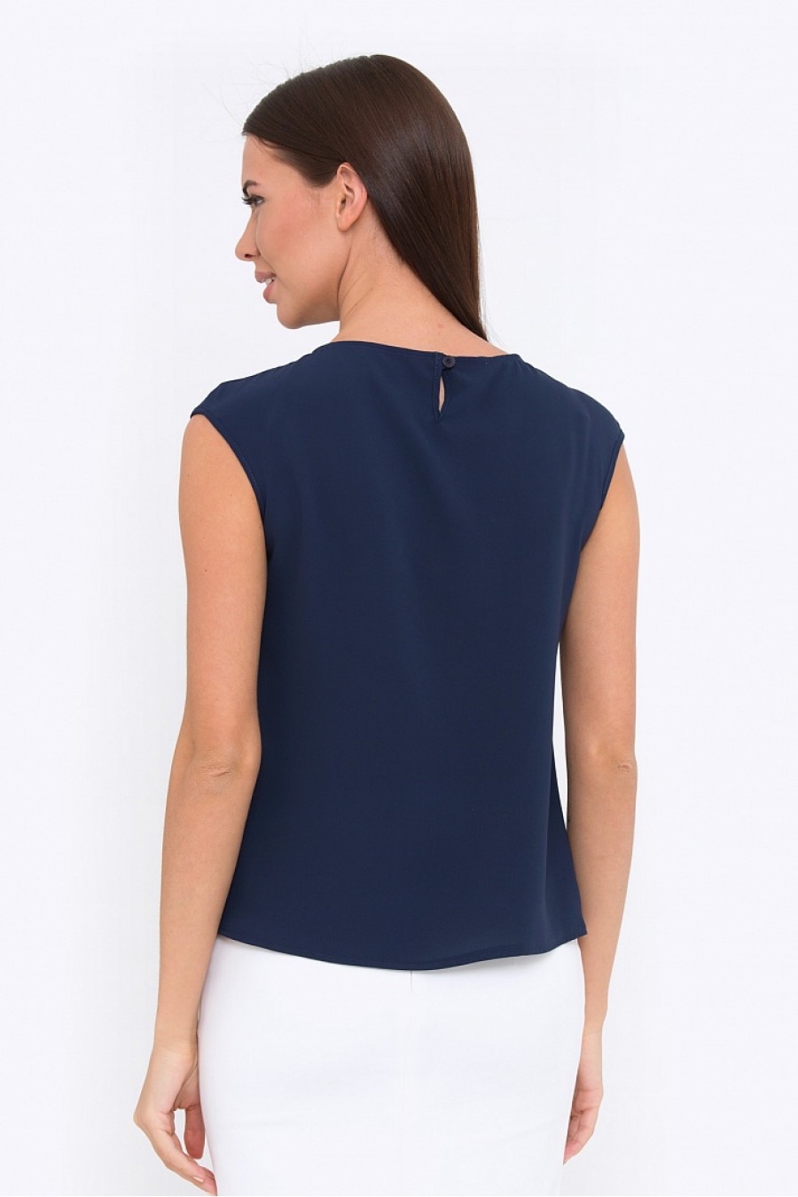 Легкая блузка из легкого текстиля. Горловина блузки оформлена мягкими складками и декоративной металлической цепочкой. Отличная модель для офиса, хорошо сочетается с классическими юбками.