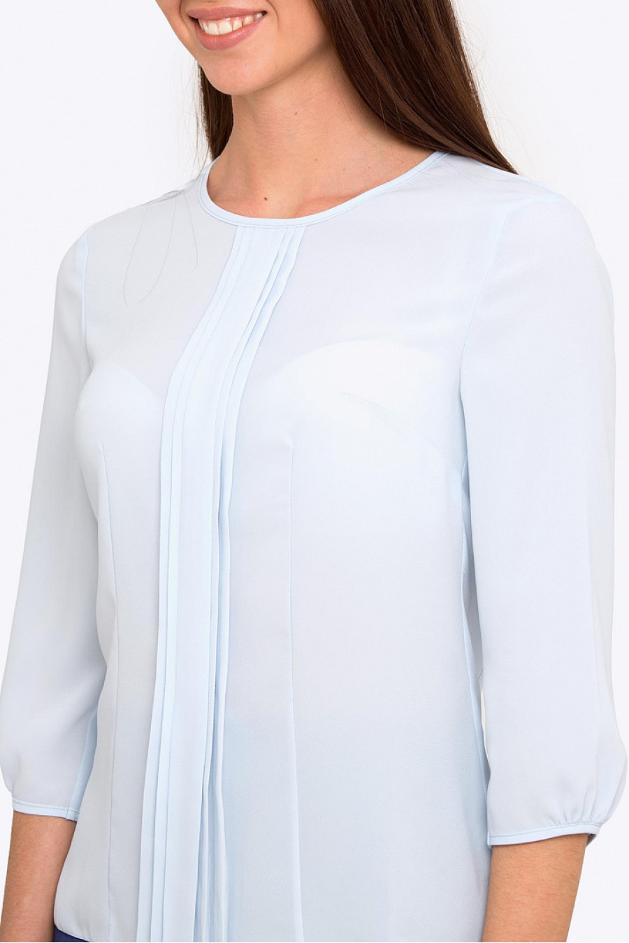 Женская блузка. Ткань гладкая, эластичная, приятная к телу. Рукав 3/4. Блузка спереди оформлена аккуратными складками. Очень комфортная и неприхотливая в носке модель, хорошо сочетается с классическими юбками и брюками.