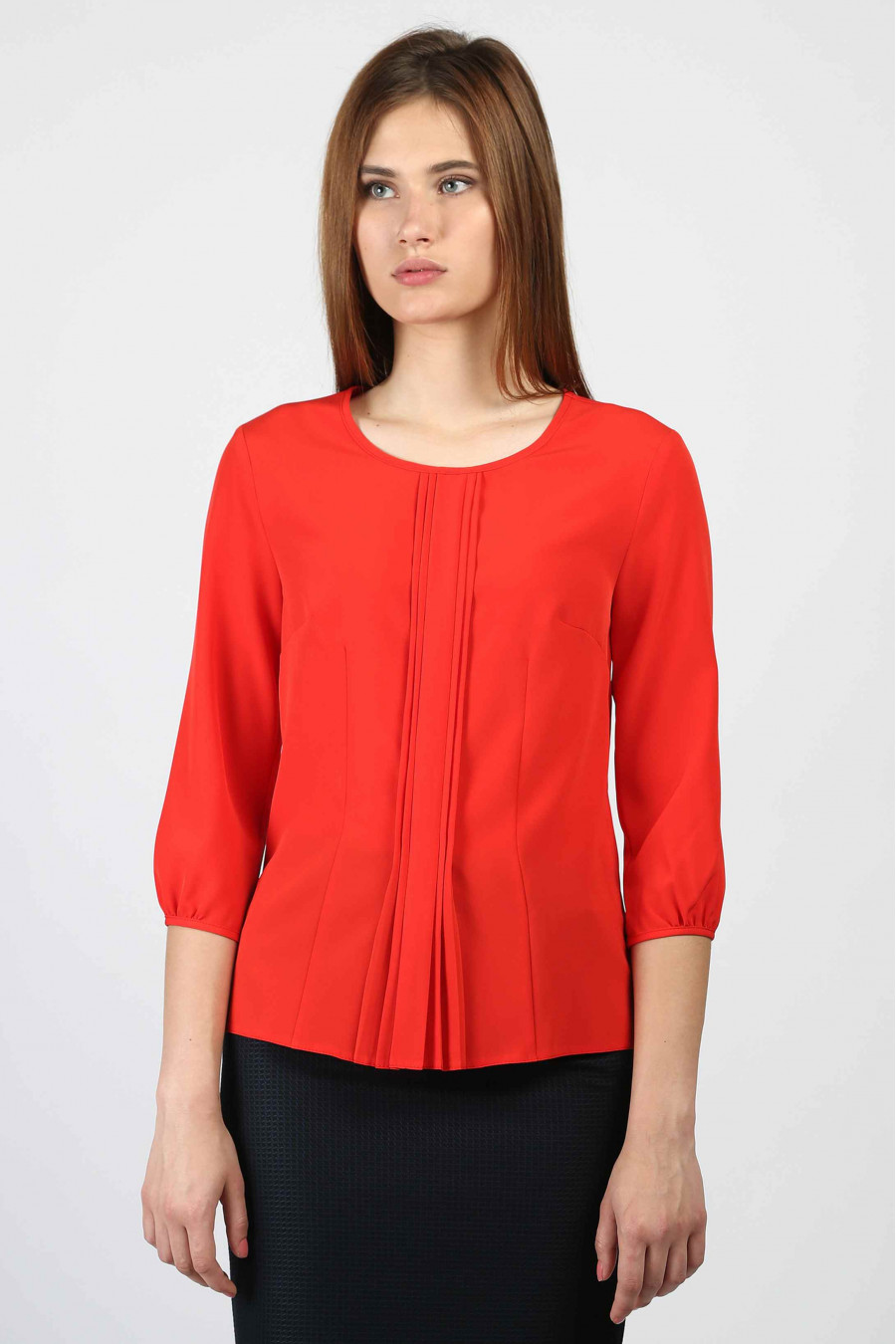 Легкая офисная блузка сочно-красного цвета. Ткань гладкая, эластичная, приятная к телу. Рукав 3/4. Блузка спереди оформлена аккуратными складками. Очень комфортная и неприхотливая в носке модель, хорошо сочетается с классическими юбками и брюками. Образ на фотографии дополняет юбка 561-edna.