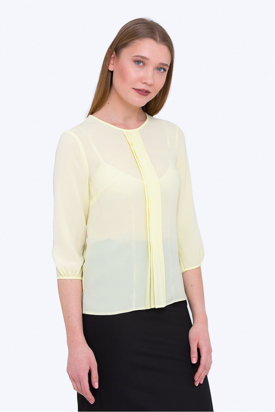 Женская блузка. Ткань гладкая, эластичная, приятная к телу. Рукав 3/4. Блузка спереди оформлена аккуратными складками. Очень комфортная и неприхотливая в носке модель, хорошо сочетается с классическими юбками и брюками.