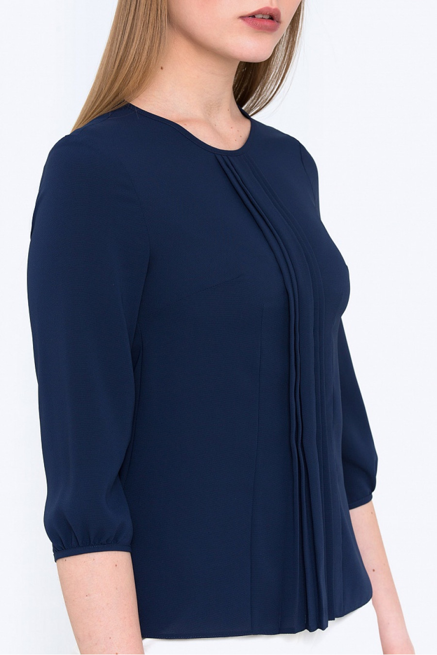 Женская блузка. Ткань гладкая, эластичная, приятная к телу. Рукав 3/4. Блузка спереди оформлена аккуратными складками. Очень комфортная и неприхотливая в носке модель, хорошо сочетается с классическими юбками и брюками.