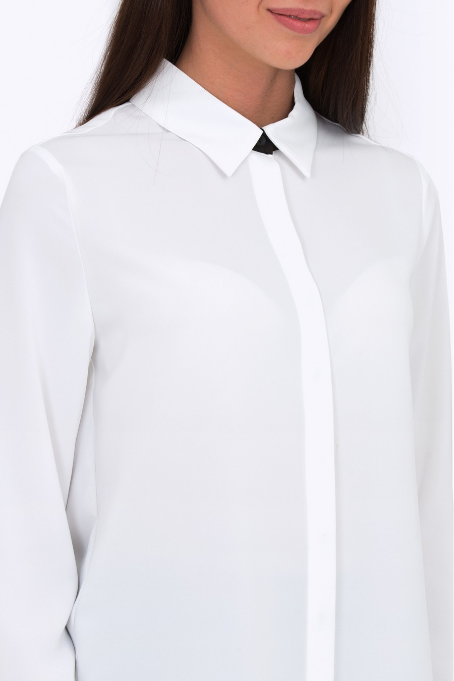 Элегантная блузка с классическим воротником. Ткань нежная, струящаяся, очень приятная к телу белого цвета. Стильная деталь блузки - черная стойка воротника и черные пуговицы. Интересная и стильная модель, отличный вариант для офиса. Блузку можно носить как навыпуск, так и заправленной. Образ на фотографии дополняет юбка 533-milisa.