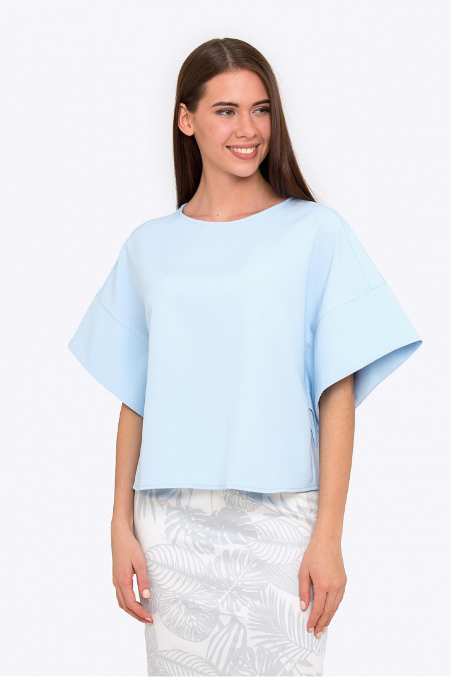 Изящная укороченная блузка с широкими рукавами. Ткань эластичная, очень приятная к телу. Блузка свободно сидит по фигуре, смотрится очень элегантно. Модель отлично подойдет и для офиса и для праздничных мероприятий. Рост фотомодели 172 см.