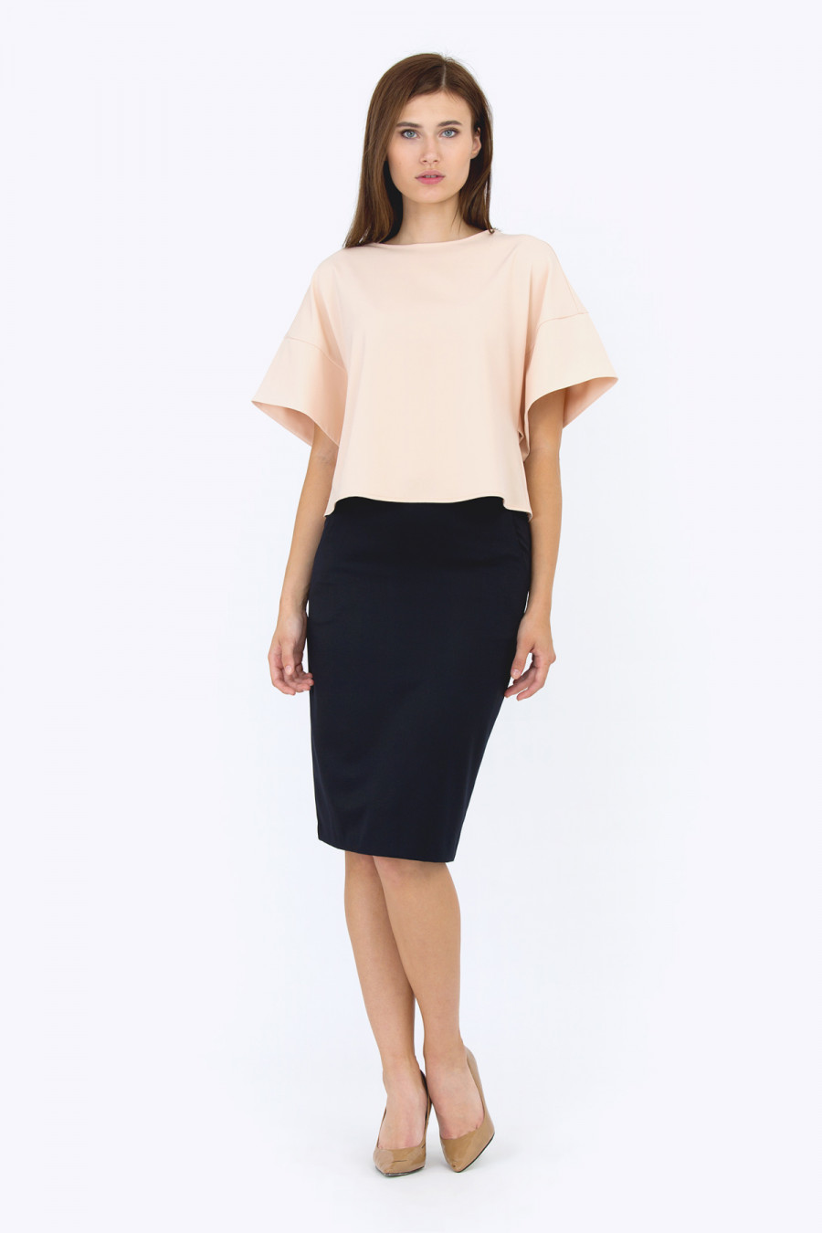 Изящная укороченная блузка с широкими рукавами. Ткань эластичная, светло-персикового цвета, очень приятная к телу. Блузка свободно сидит по фигуре, смотрится очень элегантно. Модель отлично подойдет и для офиса и для праздничных мероприятий. Рост фотомодели 175 см.