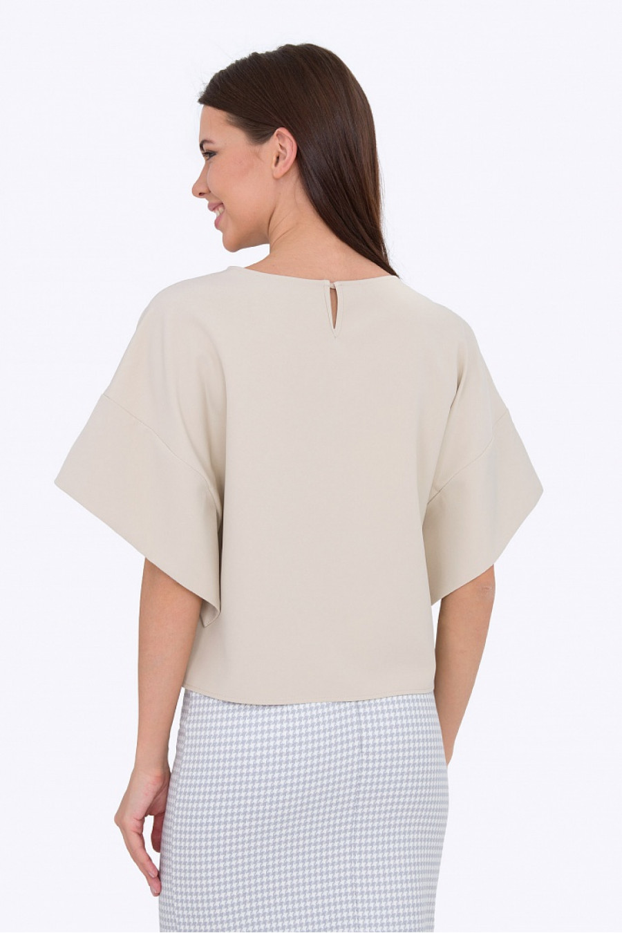 Стильная укороченная блузка с широкими рукавами. Ткань очень приятная к телу. Блузка свободно сидит по фигуре, смотрится очень элегантно. Модель отлично подойдет и для офиса, и для праздничных мероприятий. Рост фотомодели 172см.