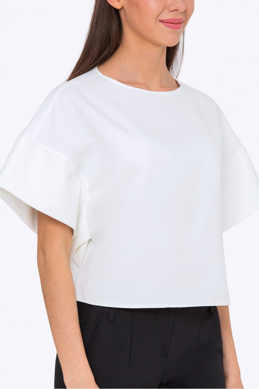 Стильная укороченная блузка с широкими рукавами. Ткань очень приятная к телу. Блузка свободно сидит по фигуре, смотрится очень элегантно. Модель отлично подойдетдля офиса,праздничных мероприятийи на каждый день. Рост фотомодели 172см.