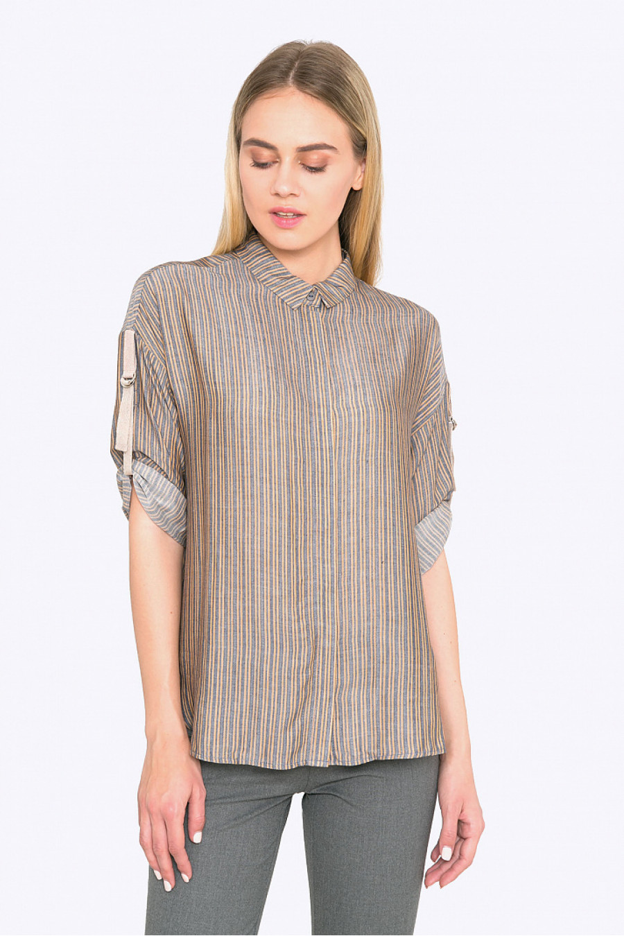 Стильная женская рубашка в полоску, из вискозы. Модель соответствует модным тенденциям этого сезона. Очень стильная и комфортная рубашка. Благодаря свободному крою рубашка хорошо сидит по фигуре, не сковывает движения. Рост фотомодели 175см.