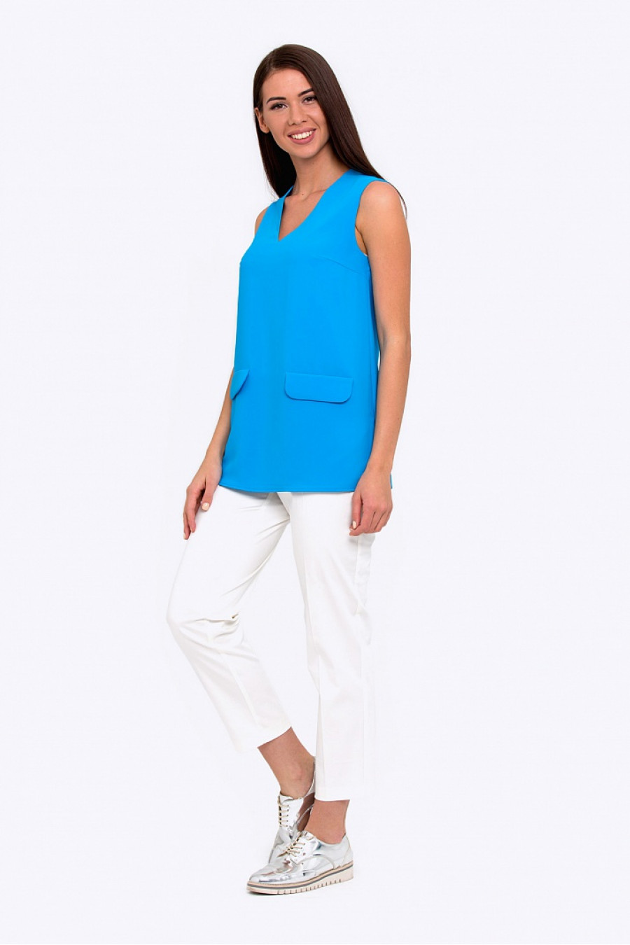 Блузка прямого кроя из легкого текстиля с клапанами. Есть подкладка из полиэстера. По бокам небольшие разрезы. Модель хорошо сидит и позволит создать стильный образ.