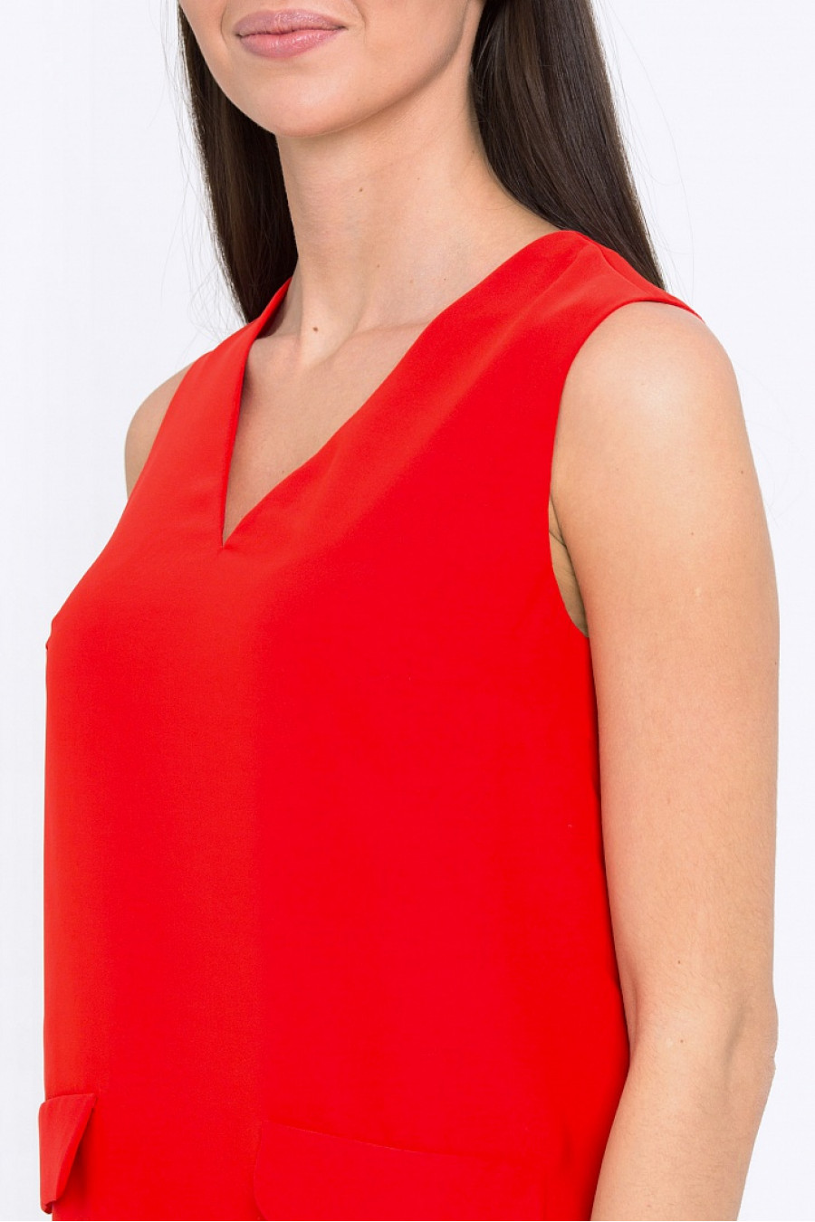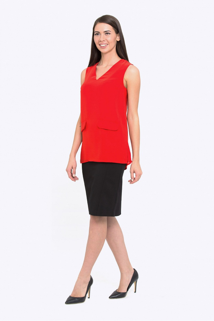 Блузка прямого кроя из легкого текстиля с клапанами. Есть подкладка из полиэстера. По бокам небольшие разрезы. Модель хорошо сидит и позволит создать стильный образ.