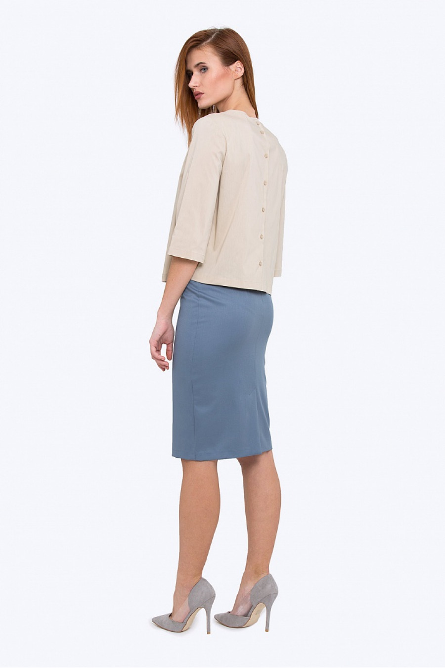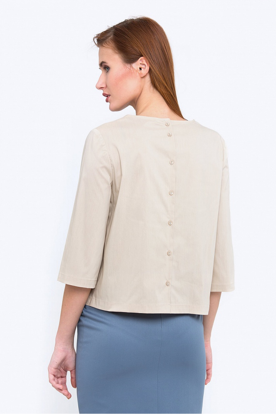 Блузка свободного кроя из хлопкового текстиля. Рукава 3/4 расклешенные к низу. На горловине сборка. Сзади застежка на пуговицы. стильная модель на каждый день.