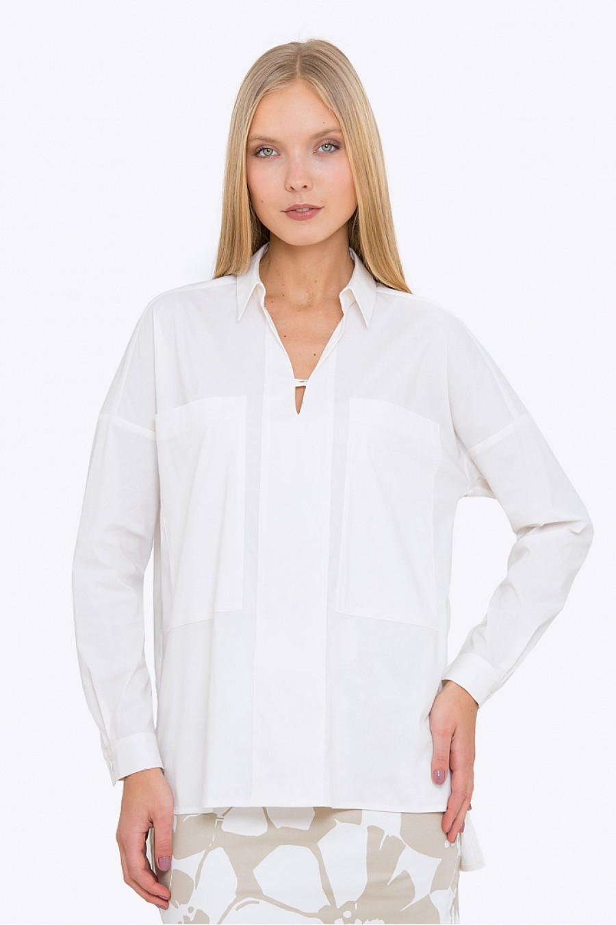Женская рубашка свободного кроя с V-образным вырезом. Модель из хлопкового текстиля в тонкую полоску. Рубашка в стиле Casual отличный выбор на каждый день.