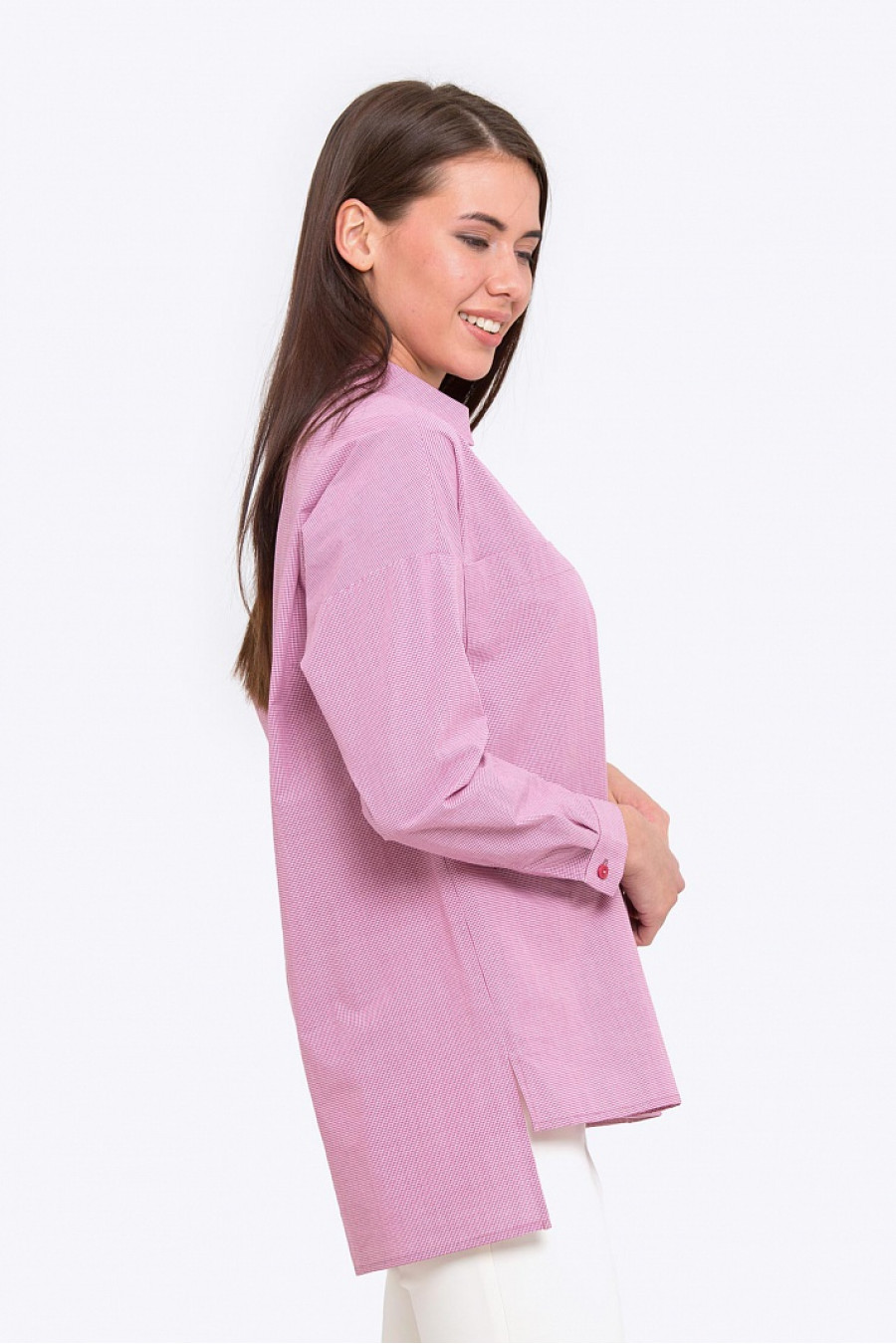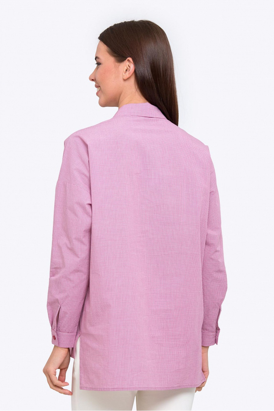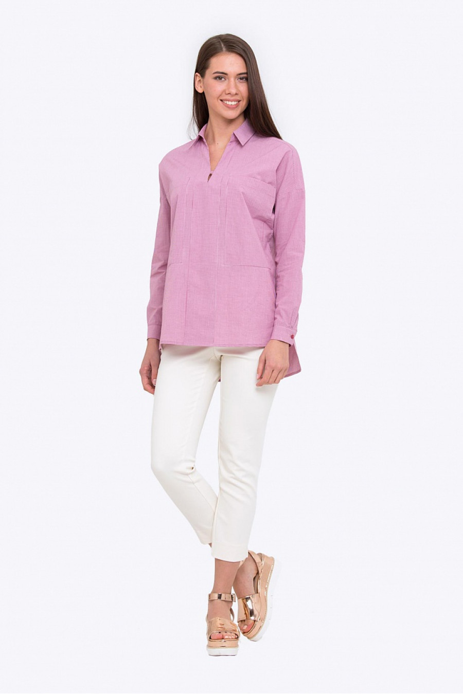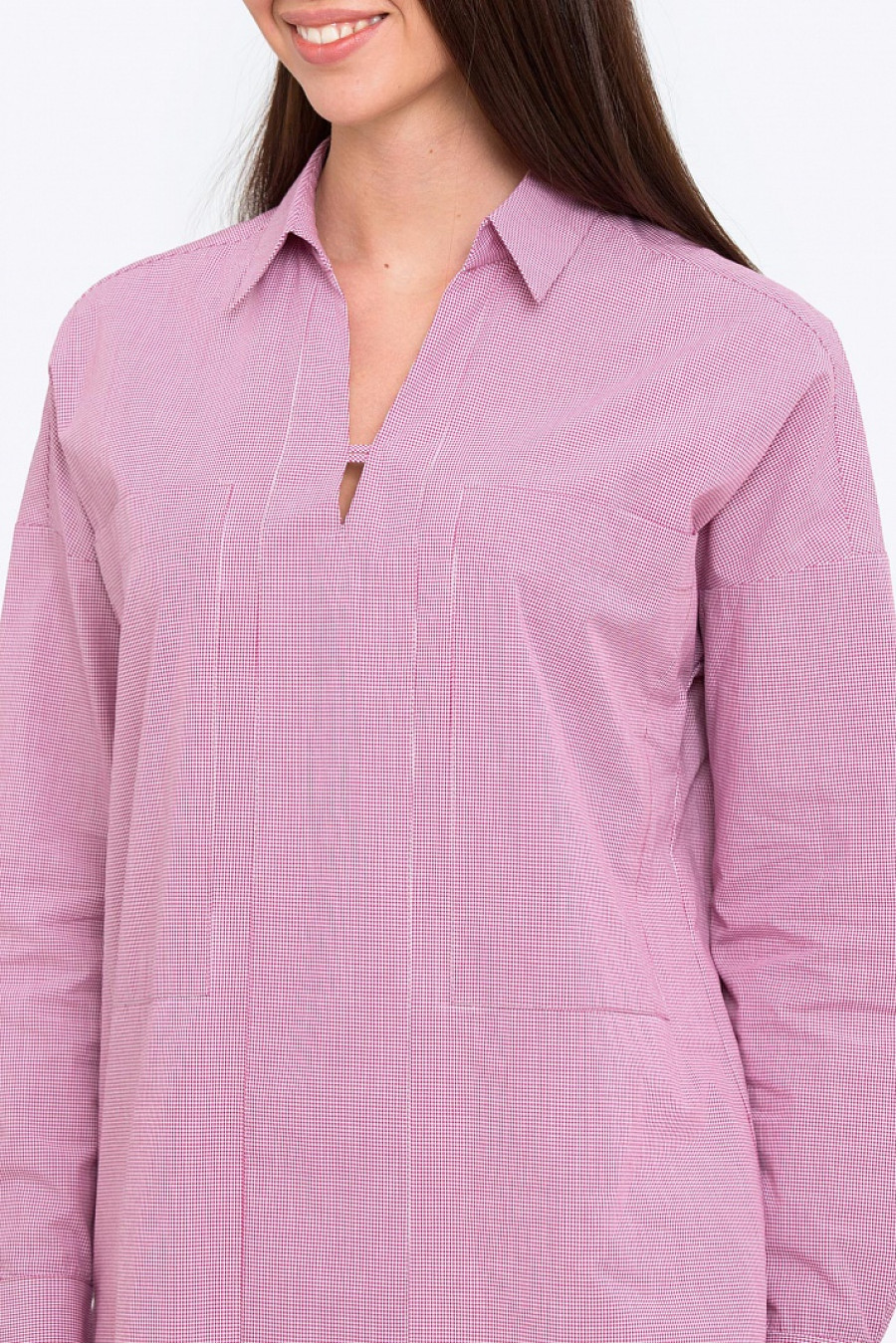 Женская рубашка свободного кроя с V-образным вырезом. Модель из хлопкового текстиля в тонкую полоску. Рубашка в стиле Casual отличный выбор на каждый день.