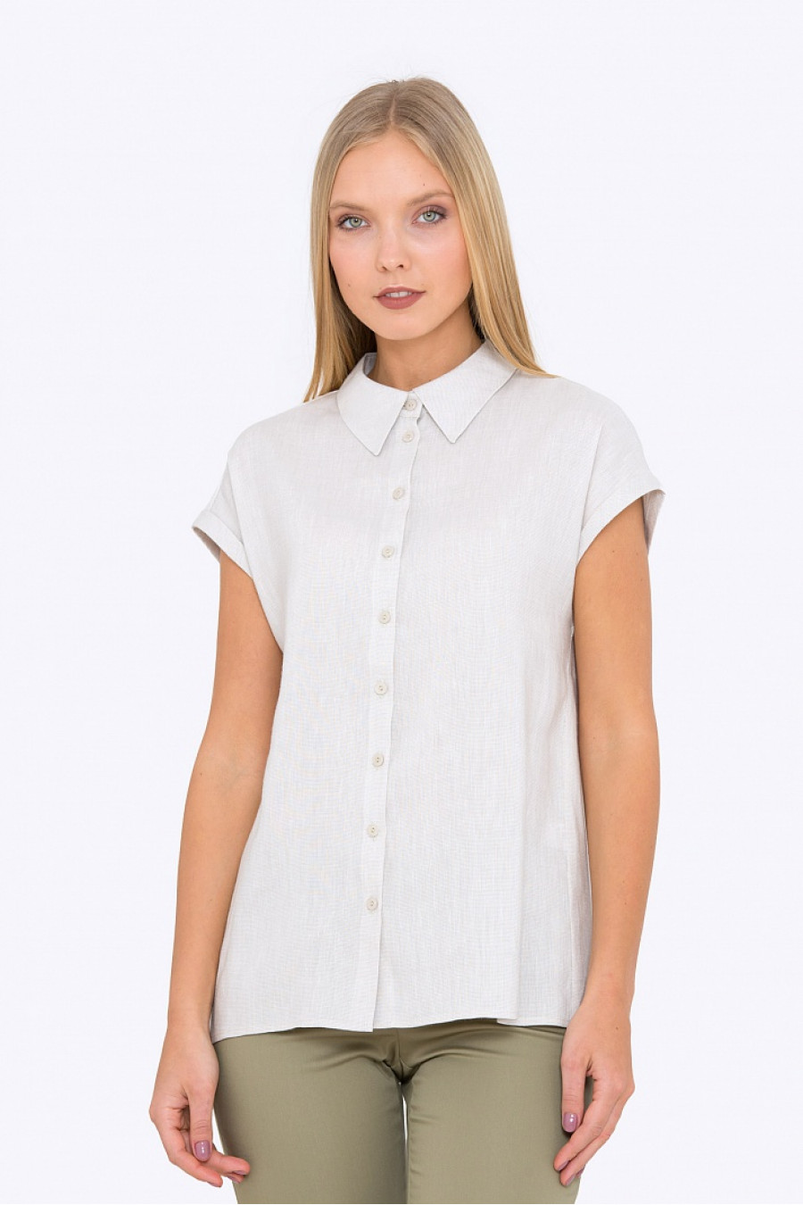 Блузка свободного кроя с короткими цельнокроеными рукавами. Ткань мягкая приятная к телу. Модель хорошо сидит и отлично сочетается юбками, брюками или шортами.