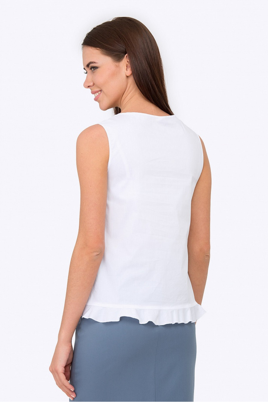 Легкая блузка из хлопкового текстиля. Модель свободного кроя с оборкой по низу. Элегантная модель позволит создать нежный, женственный образ.Рост фотомодели 172 см.