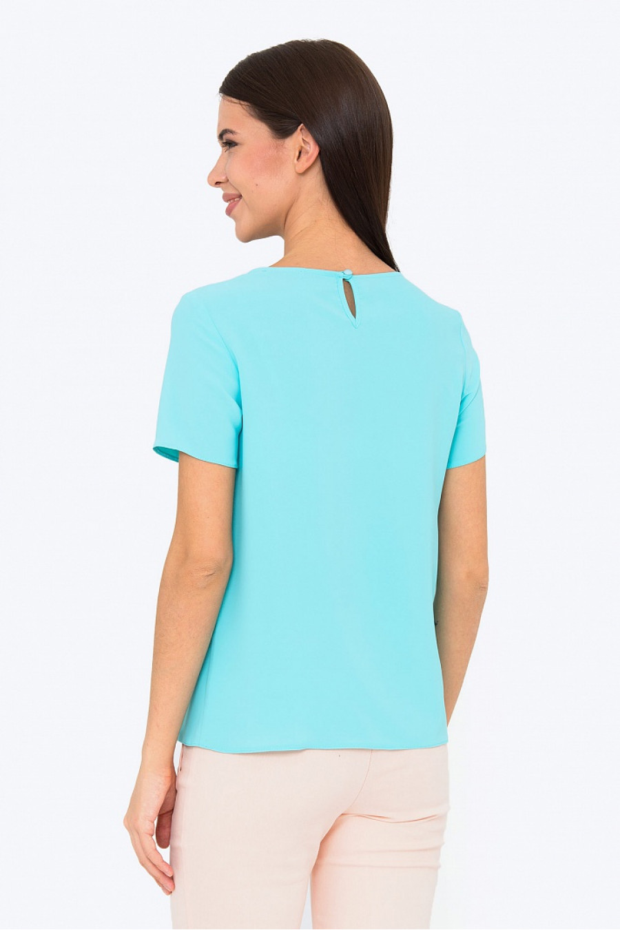 Блузка прямого кроя с короткими рукавами. Модель из легкого текстиля приятного синего цвета. Блузка хорошо сидит, комфортная в носке. Прекрасный выбор на каждый день и для офиса. Рост фотомодели 172 см.