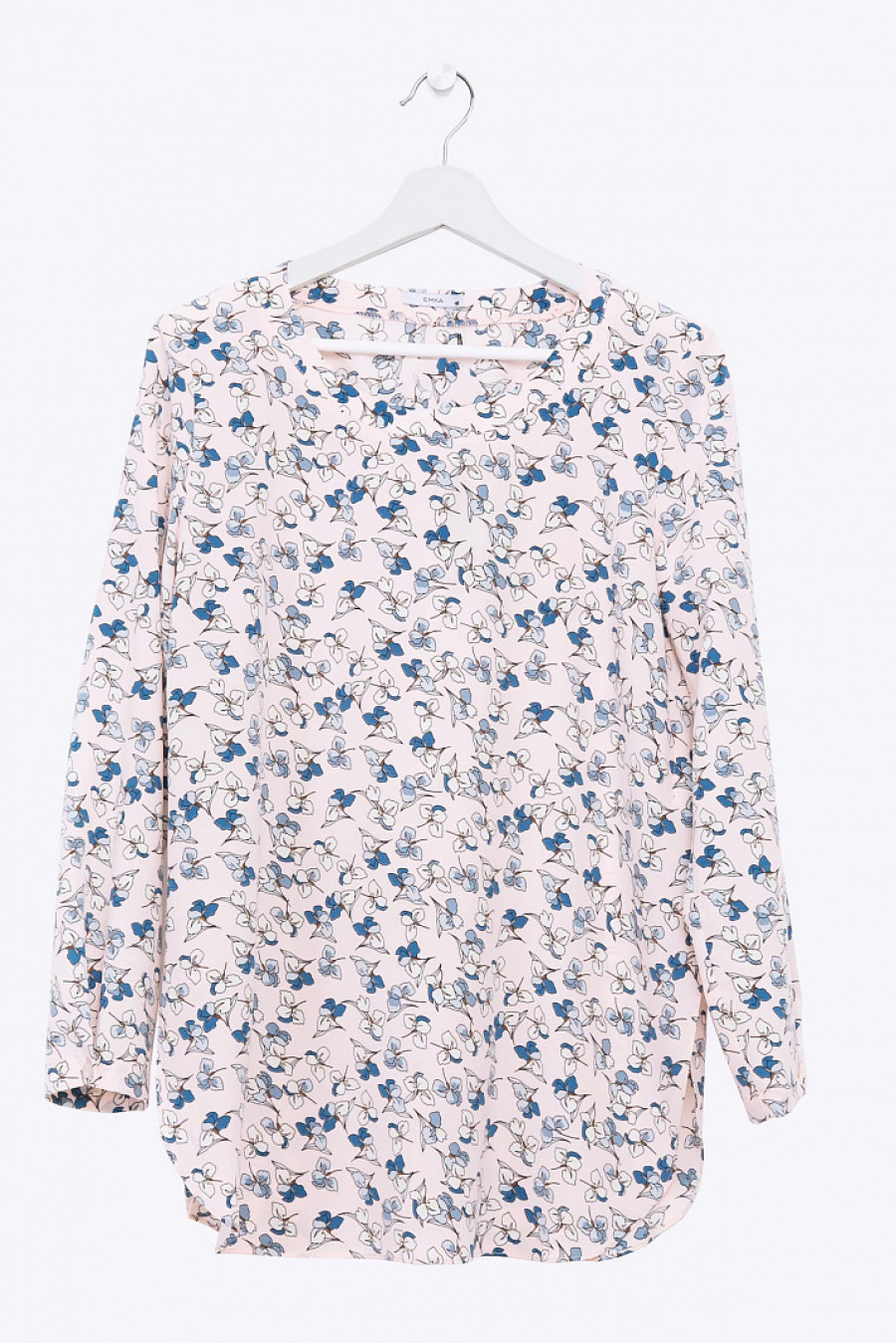 Блузка прямого кроя с разрезами по бокам. Ткань легкая, с цветочным принтом. Рукава длинные с пуговицей на манжете. Стильная модель на каждый день и для создания делового образа. Рост фотомодели 178см.