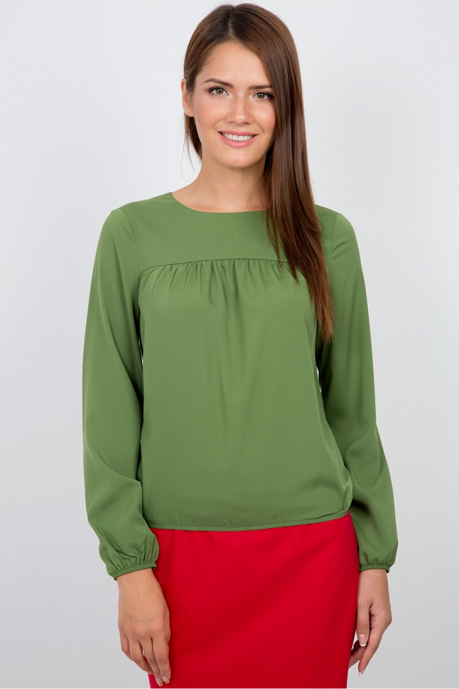 Модная блузка свободного покроя. Модель с округлым вырезом горловины и прямыми длинными рукавами. Модель будет прекрасно гармонировать с любыми предметами гардероба.