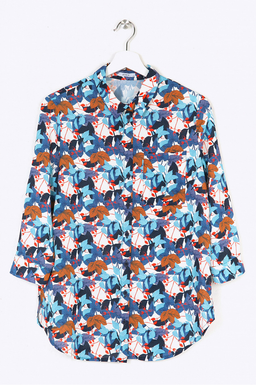 Закрытая блузка с густым растительным орнаментом с преобладанием