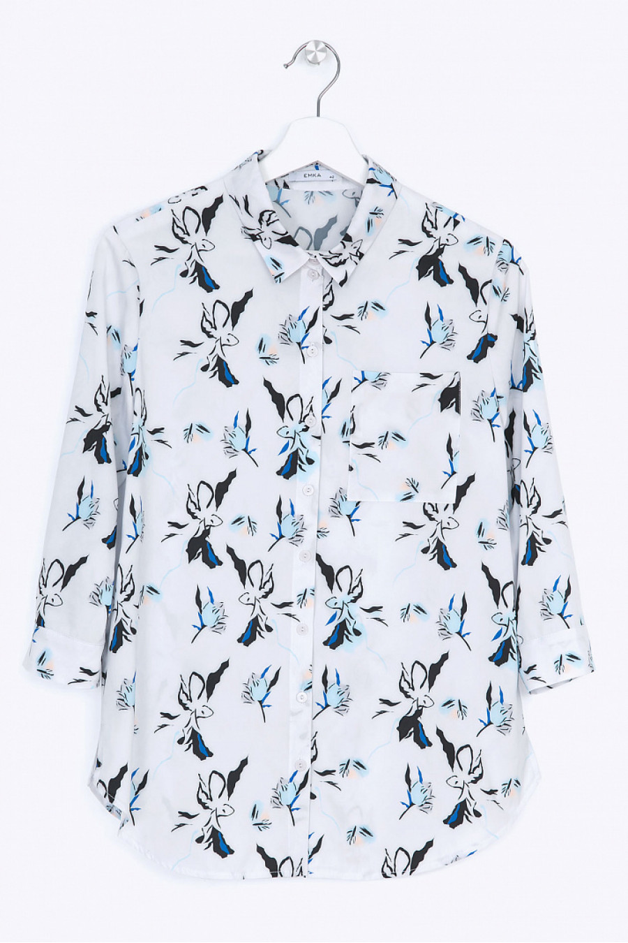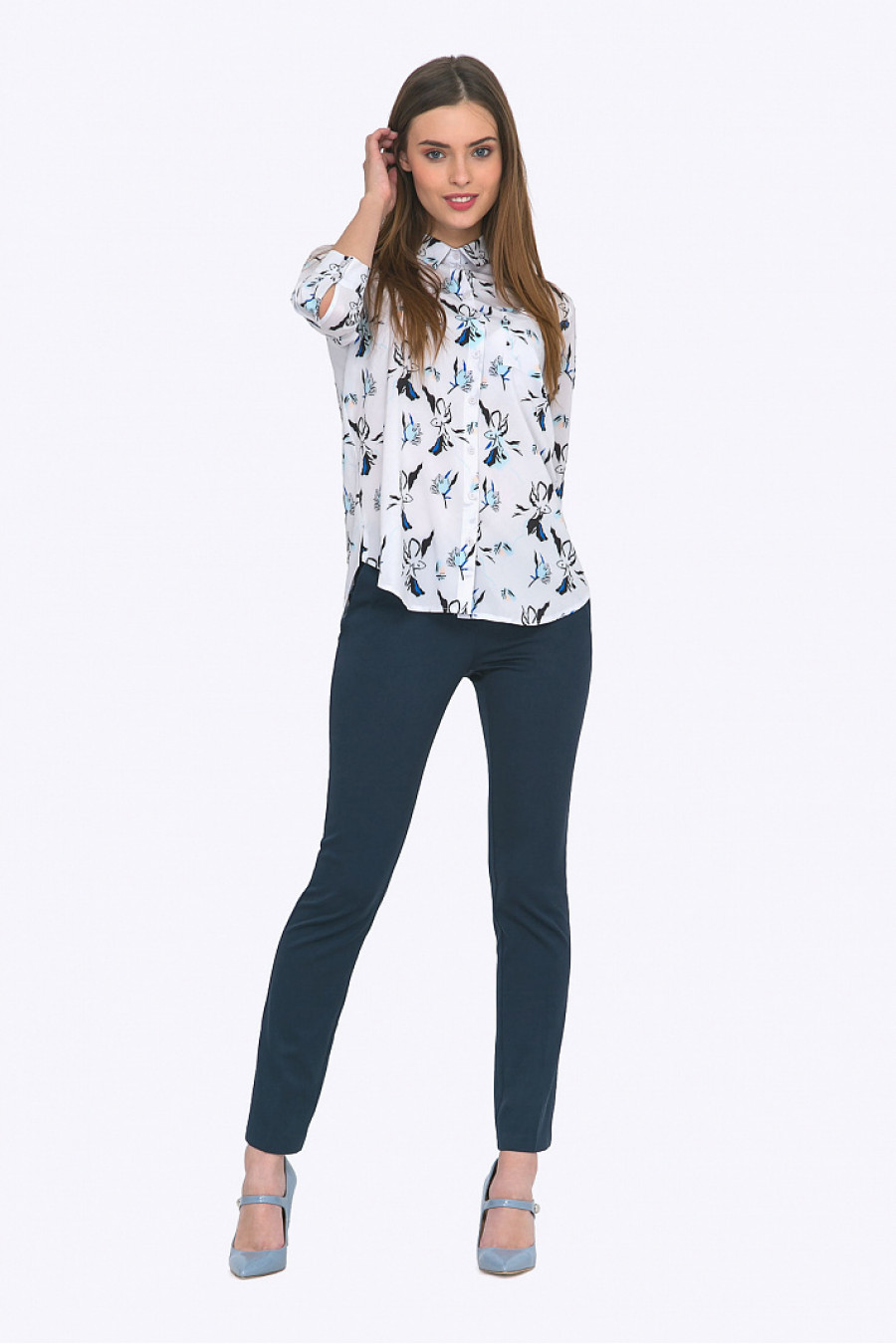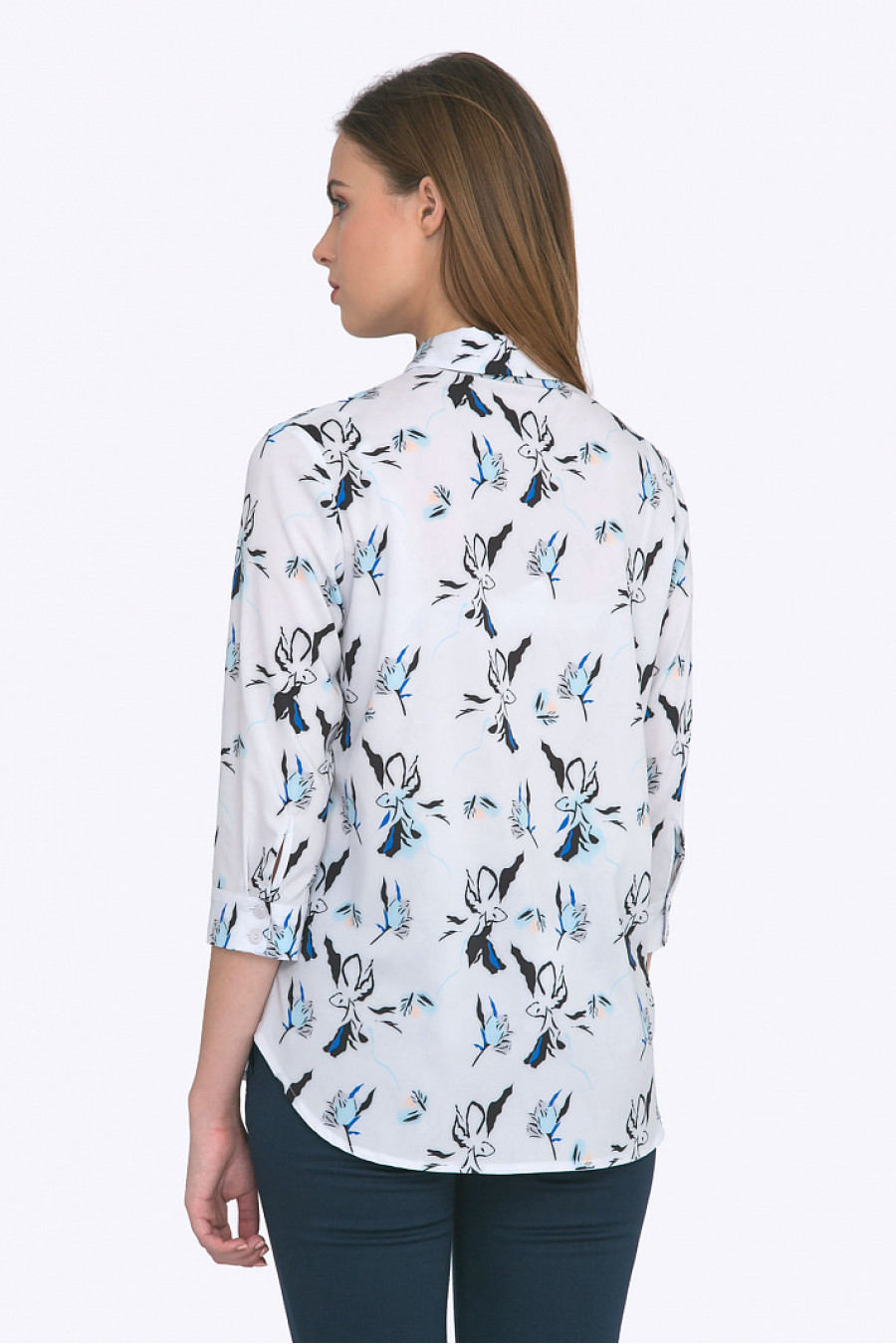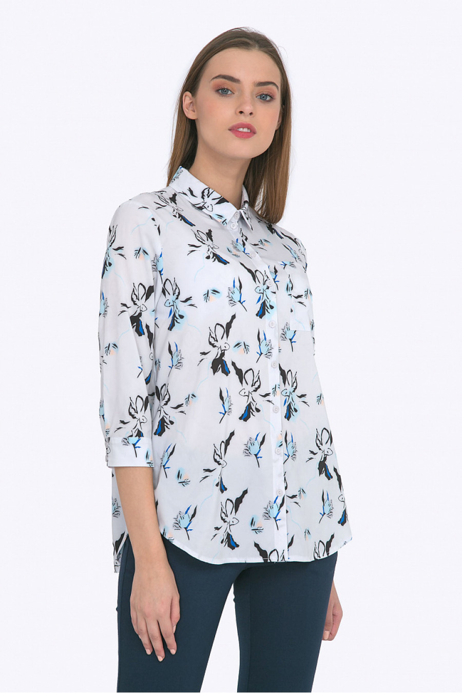 Легкая блузка с цветочным принтом. Ткань гладкая, струящаяся. Спереди модель оформленанакладным карманом. Очень комфортная блузка, хорошо сочетается с однотонными юбками и брюками. Образ на фото дополнен Брюками D076-kravitz.Рост фотомодели 176 см.