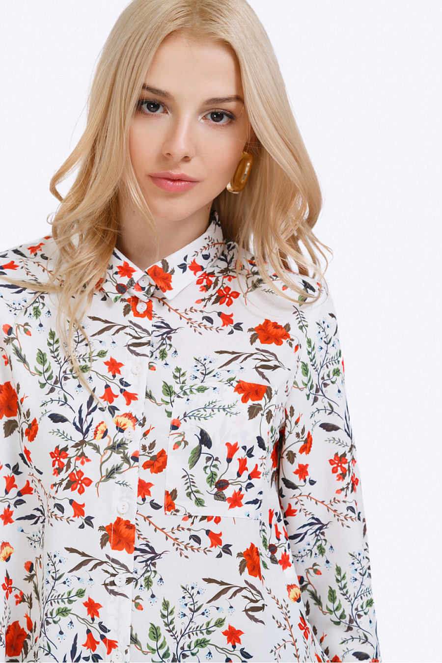 Яркая блузка с тёплым растительным орнаментом для образов в