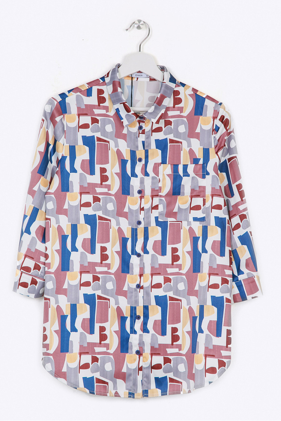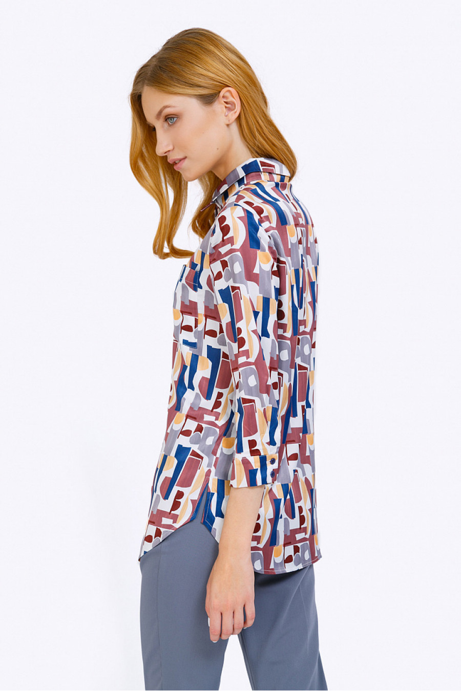 решением шедевры Кандинского. Модель прямого покроя, свободно облегает фигуру,имеет отложной воротник, планку с пуговицами, кармашек, фигурную линию подола с небольшими разрезами в боковых швах. Рукава ¾ дополнены манжетами. Образ на фото дополнен Брюками D021-iveta. Рост фотомодели 176 см.
