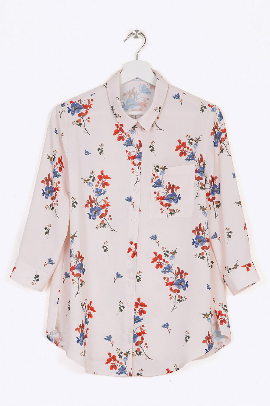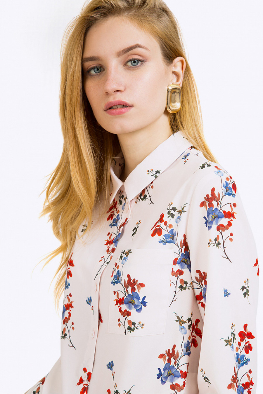 Блузка с растительным принтом в полифоничной цветовой гамме. Модель прямого покроя со свободным облеганием по фигуре. Имеет рукава ¾, дополненные манжетами с двумя пуговками, рубашечный воротник. Спереди расположены небольшой кармашек и классическая планка застёжки с пуговичками. Линия подола фигурной формы с разрезами в боковых швах. Образ на фото дополнен Брюками D115-rovonda. Рост фотомодели 176 см.