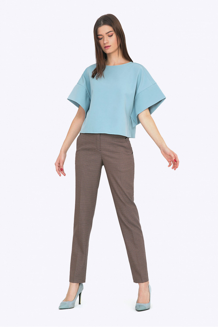 Стильная укороченная блузка с широкими рукавами. Ткань плотная. Модель свободного кроя. Блузка отлично подойдетдля офиса,праздничных мероприятийи на каждый день. Образ на фото дополнен Брюками D003-sansa.Рост фотомодели 174см.