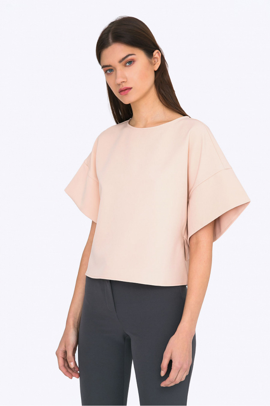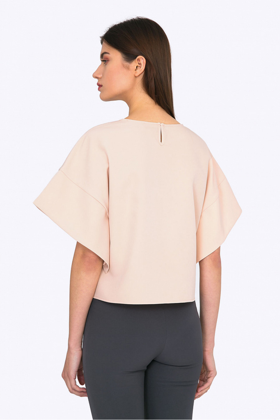 Стильная укороченная блузка с широкими рукавами. Ткань плотная. Модель свободного кроя. Блузка отлично подойдетдля офиса,праздничных мероприятийи на каждый день. Образ на фото дополнен Брюками D067-djoset.Рост фотомодели 178 см.