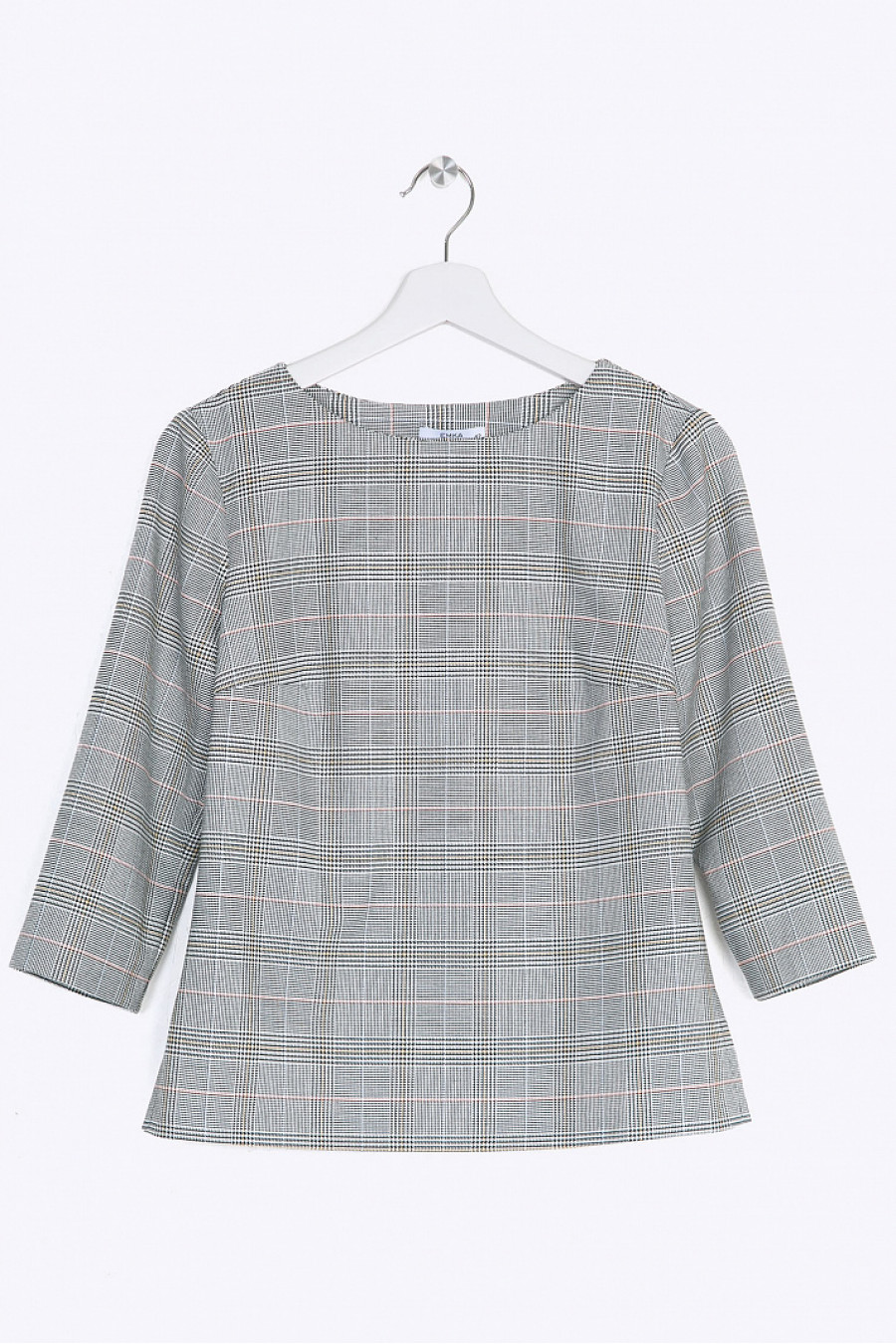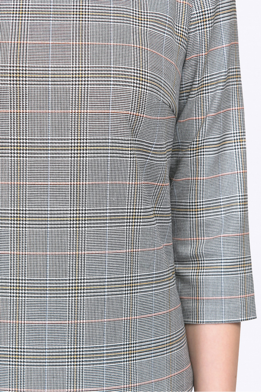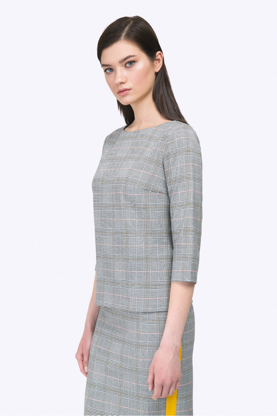 Блузка строгого силуэта из лёгкой костюмной ткани в клетку. Круглый академический вырез горловины акцентирует внимание на красивой шее, а рукав ¾ подчёркивает изящное запястье. Для формирования нестандартных решений предполагает использование однотонных ярких аксессуаров. В сочетании с Юбкой S782-fawn образ приобретает характер спортивно-делового стиля.Рост фотомодели 178 см.