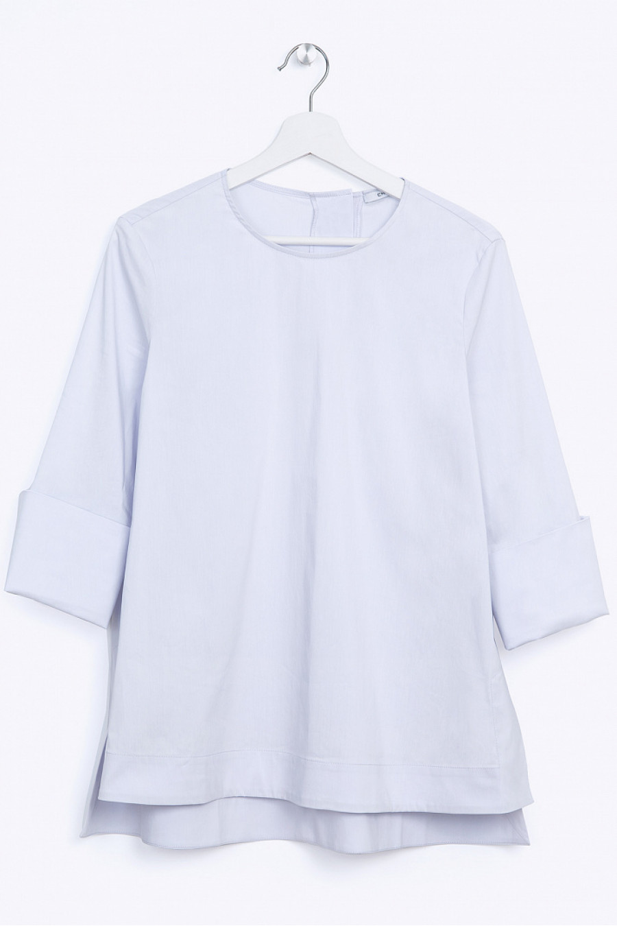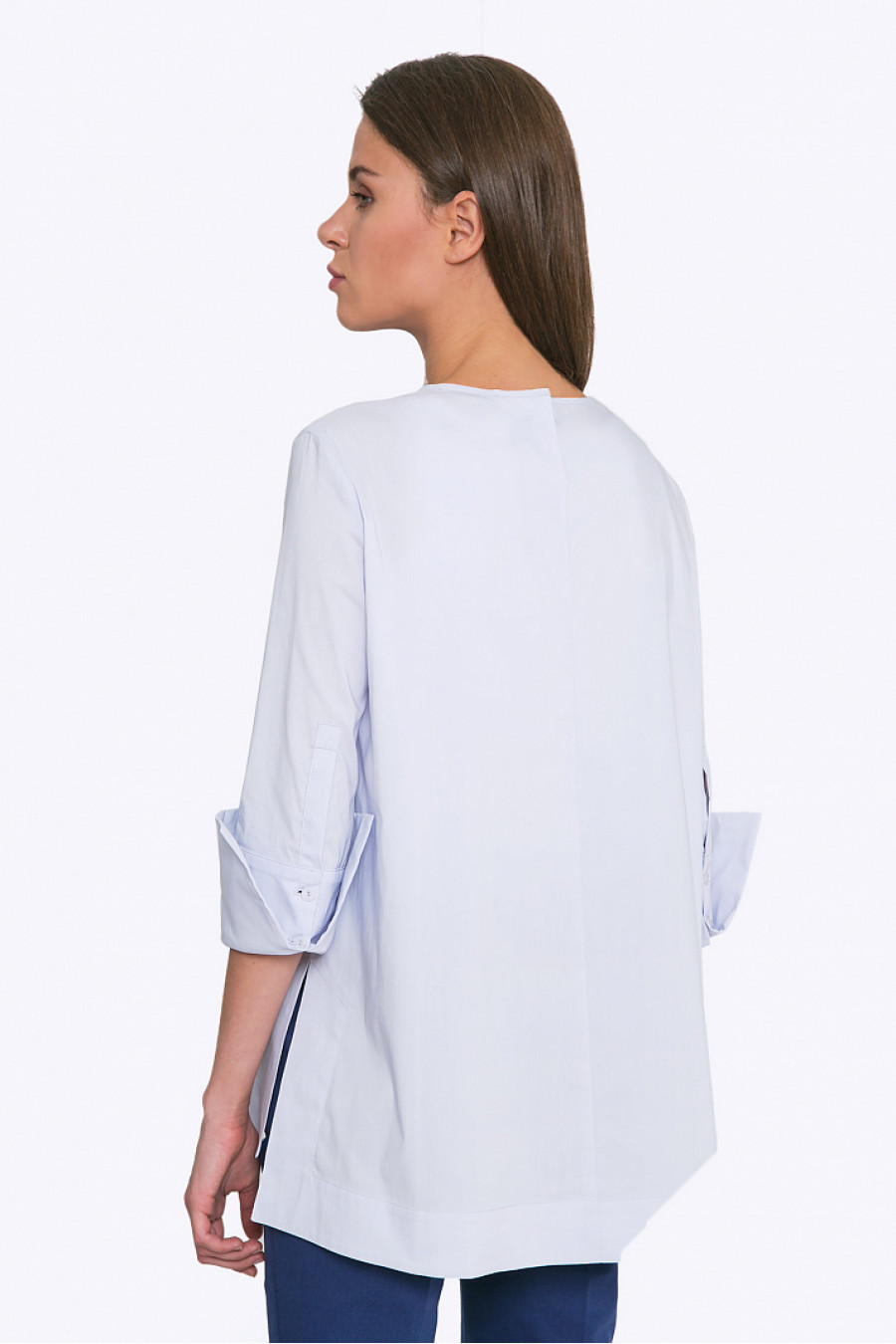 Блузка свободного кроя с разрезами по бокам и асимметричным низом. Рукава 3/4 с широкими манжетами. Модель не сковывает движения и позволит создать стильный лук. Рост фотомодели 175см.