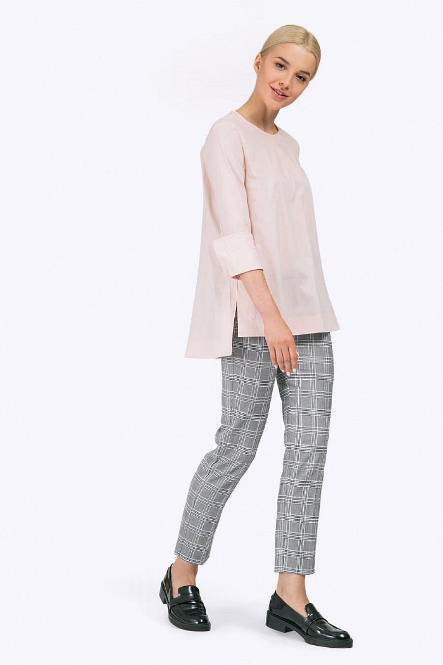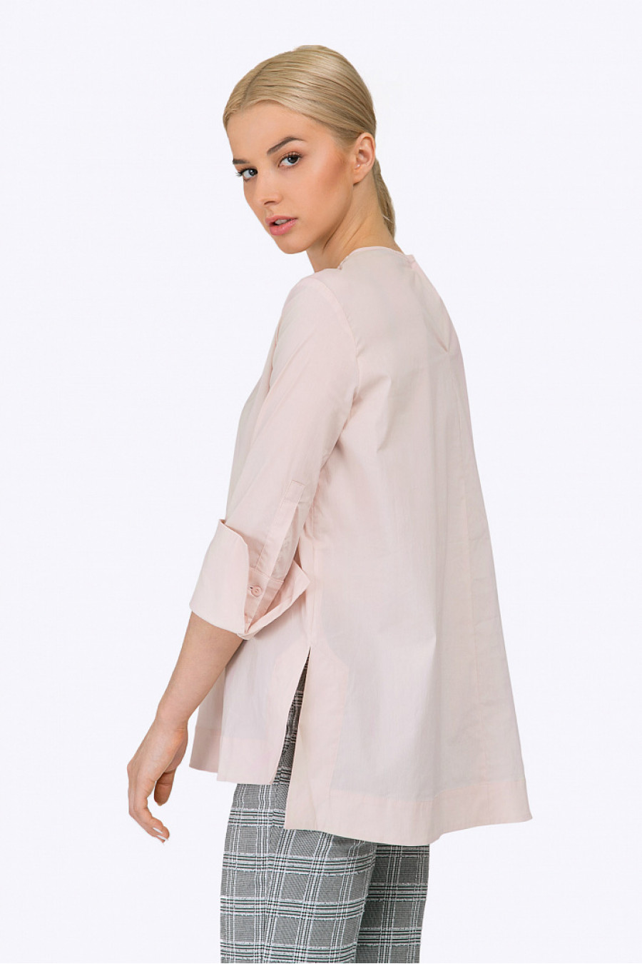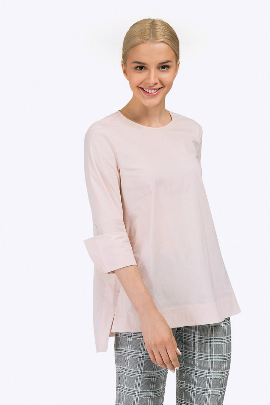 Легкая эстетичная блуза неотразимогооттенка не оставит равнодушными поклонниц восточного минимализма. Изысканный фасон с японскими мотивами придаст стильную элегантность любому современному look-у. Трендовый в этом сезоне ассиметричный подол и манжеты, - подчеркнут актуальность образа. Со светлыми лаконичными брюками или прямой юбкой-макси из богатой ткани - модель идеальна для романтичной вечерней прогулки в летнюю ночь. Блуза будет отлично смотреться на блондинках и золотоволосых. Мягкая смесовая ткань с большим содержанием хлопка приятна в носке и проста в уходе. Образ на фото дополнен брюками D047-invidia .Рост фотомодели 176 см.