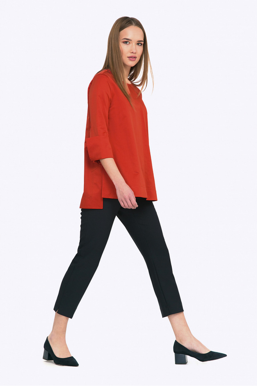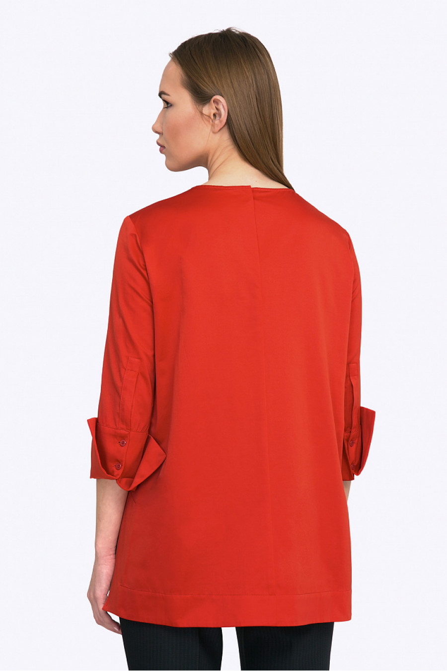 Великолепная вечерняя блуза не оставит равнодушными поклонниц восточного стиля в моде. Изысканный крой асимметричного низа и крупных манжет, эстетичные линии свободного силуэта - сделают обладательницу этой модели королевой любого праздничного мероприятия. С черными лаконичными брюками ( как на фото) или прямой юбкой макси из богатой ткани - модель создаст неповторимый яркий look. Блуза будет шикарно смотреться на брюнетках и ярких шатенках. Мягкая смесовая ткань с большим содержанием хлопка приятна в носке и проста в уходе. Образ на фото дополнен Брюками D059-flika. Рост фотомодели 174 см.