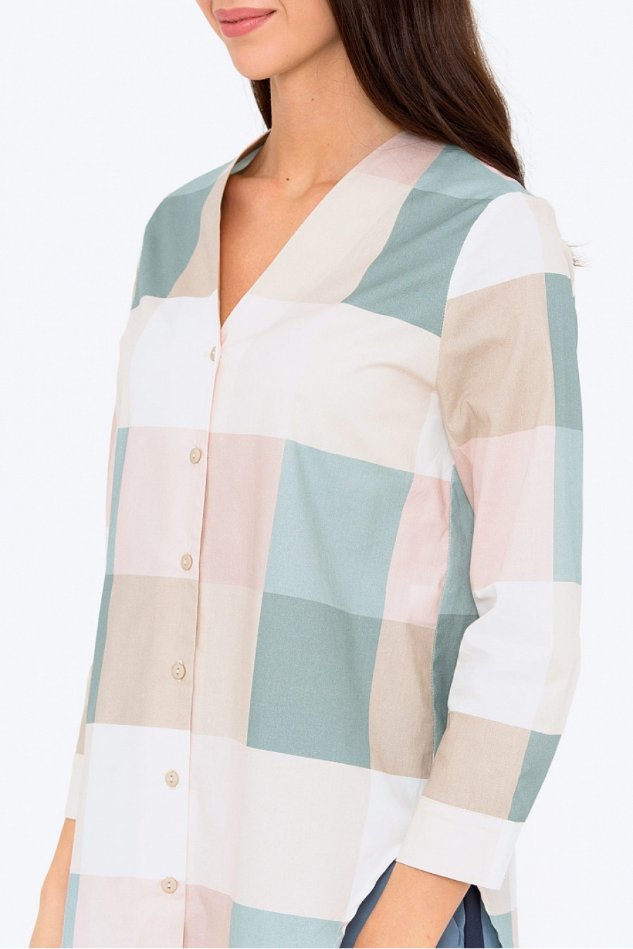 Стильная женская рубашка в стиле Casual. Модель из хлопкового текстиля с приятным по цветовому сочетанию принтом-клетка. Рубашка хорошо сидит, комфортная в носке. Отличная модель на каждый день, позволит сделать ваш образ стильным, а за счет пастельных оттенков, вам не составит труда подобрать обувь и аксессуары. Рост фотомодели 172 см.