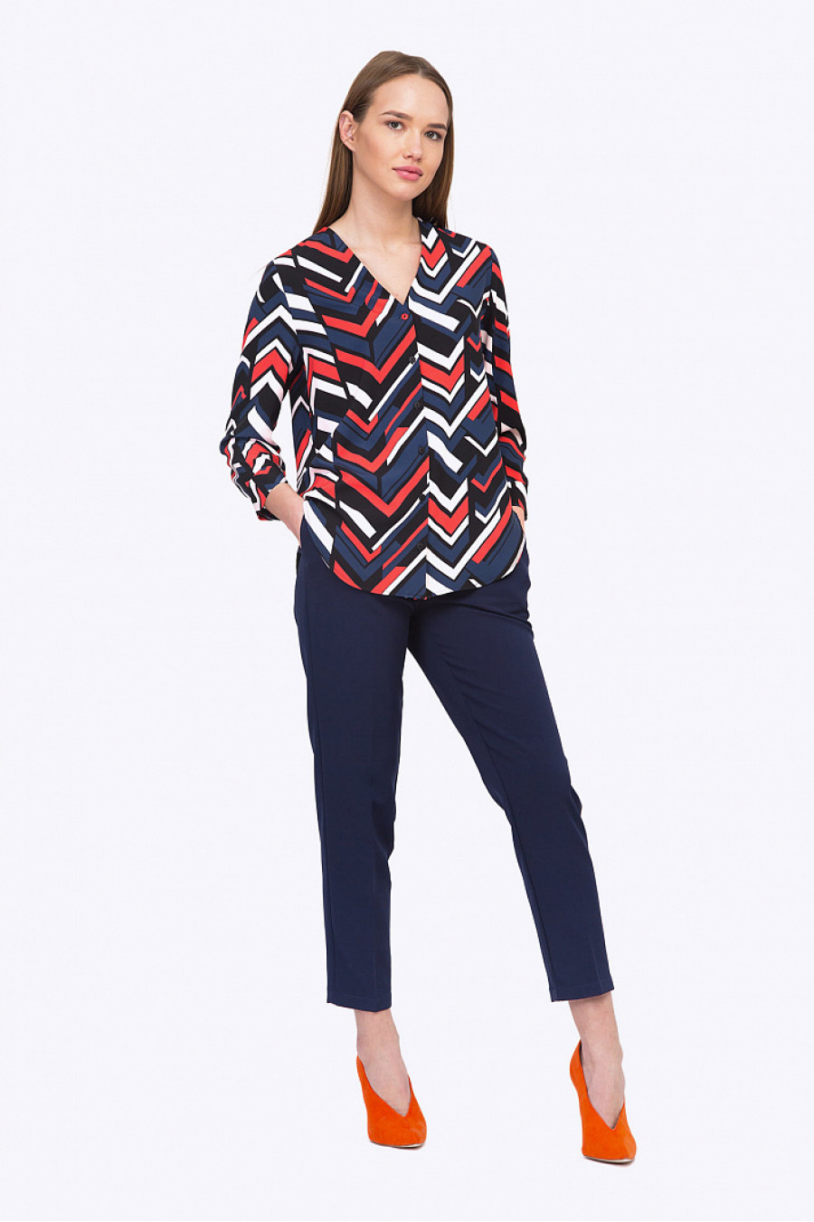 Образ на фото дополнен брюками D093-camilla . Рост фотомодели 176 см.