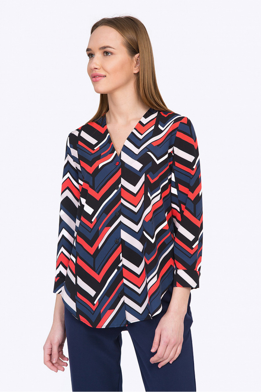 Креативная современная блуза с яркими цветными молниями- не оставит равнодушными поклонниц индивидуального стиля. Свободный лаконичный крой подчеркивает эстетику модели. Белые, синие, красные скинни или юбка-миди, - и актуальный рабочий look готов!
