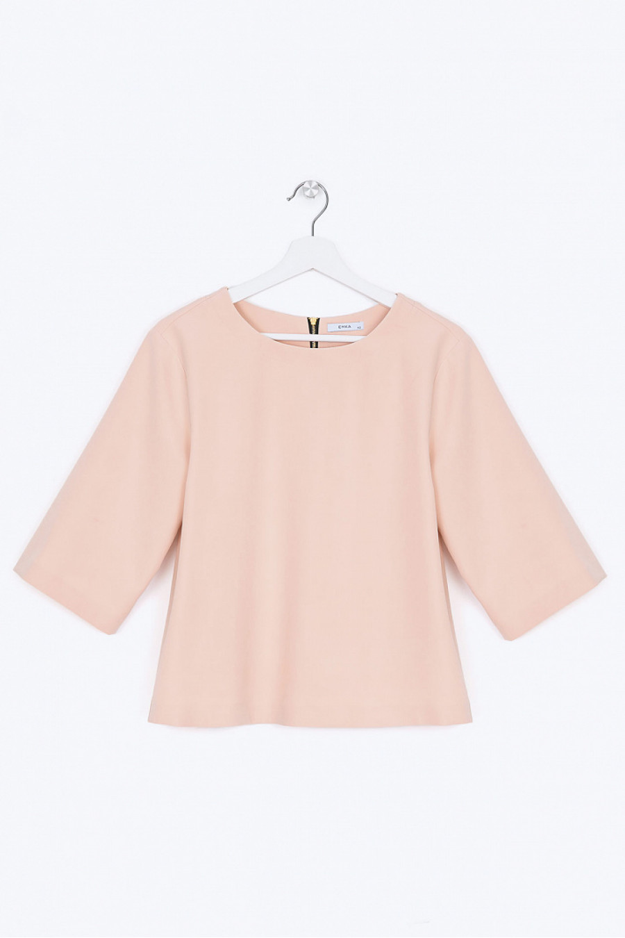 Блузка прямого кроя с молнией на спинке. Модель со свободными рукавами. Ткань средней плотности голубого цвета. Блузку можно носить как с классическими юбками, так и с брюками в стиле Casual.