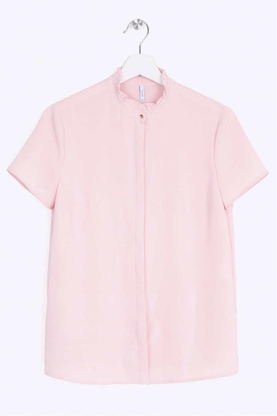 Закрытая светло-розовая классическая блузка лаконичного кроя с короткими рукавами. Выполнена из лёгкого и практичного полиэстера для создания строгого образа. Может быть дополнена спокойными аксессуарами, подчёркивающими деловой стиль. Рост фотомодели 178 см.