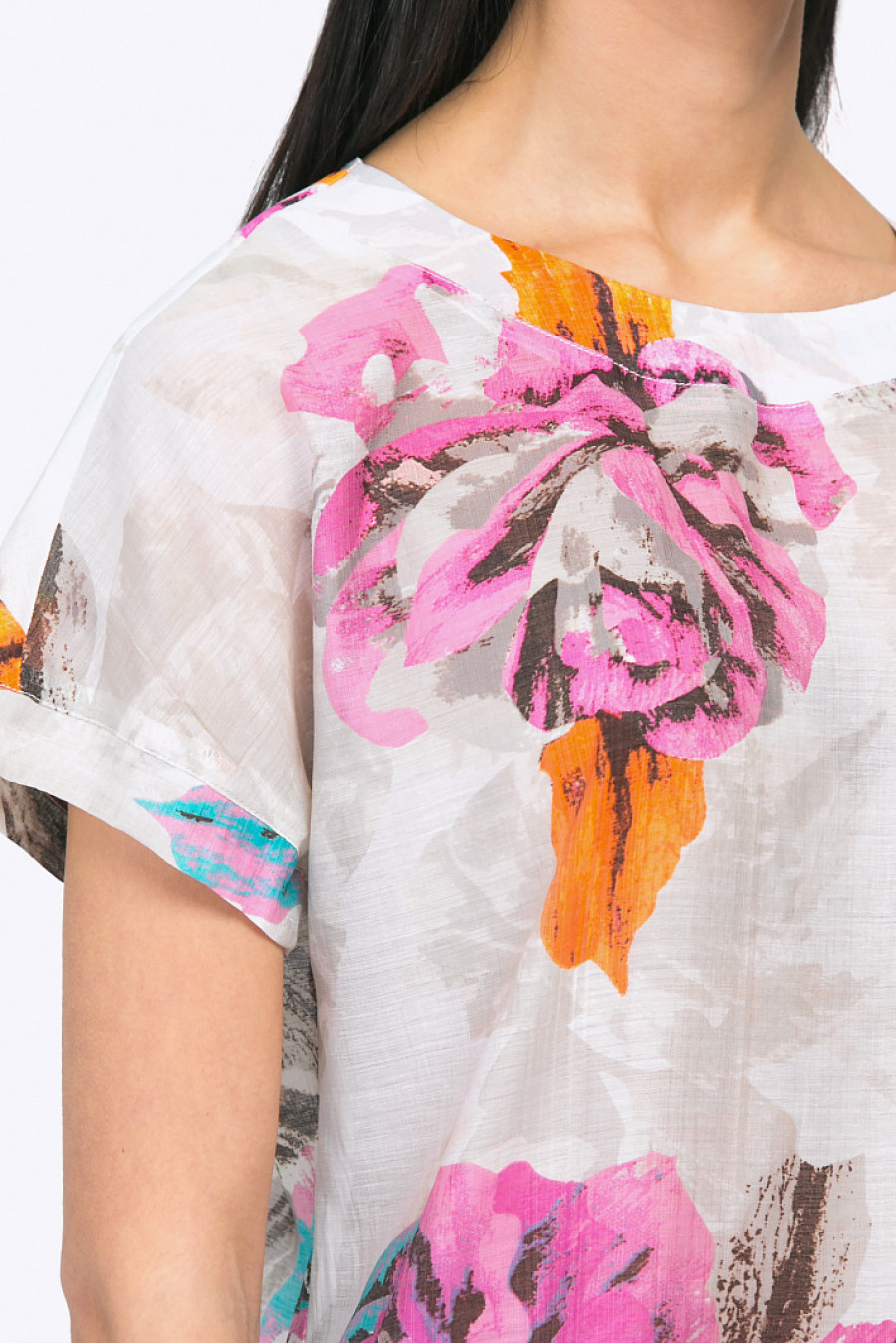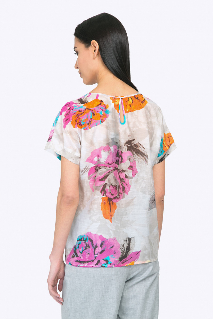 Легкая и стильная летняя блуза с ярким принтом станет идеальным выбором для создания универсального женственного образа. С черной или красной юбкой-карандаш, офисными брюками, выразительной сумкой и туфлями - вы станете самой модной сотрудницей компании. Со светлыми трикотажными кюлотами или брюками-чинос, мокасинами - получаем практичныйуличный look. Лаконичный свободный крой - подойдет любому типу фигуры, эстетичный тон - выгодно выделит природную красоту блондинок и шатенок. Образ на фото дополнен D-042-nensi . Рост фотомодели 174 см.