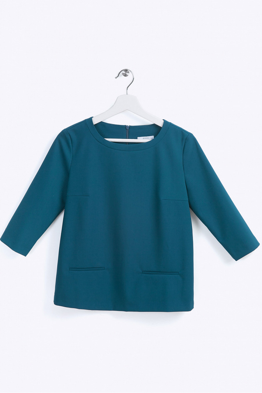 Блузка прямого кроя с функциональными карманами. Ткань средней плотности. Рукава 3/4, застежка-молния на спинке. Без подкладки. Модель хорошо сидит по фигуре. Стильная блузка на каждый день. Рост фотомодели 172 см.