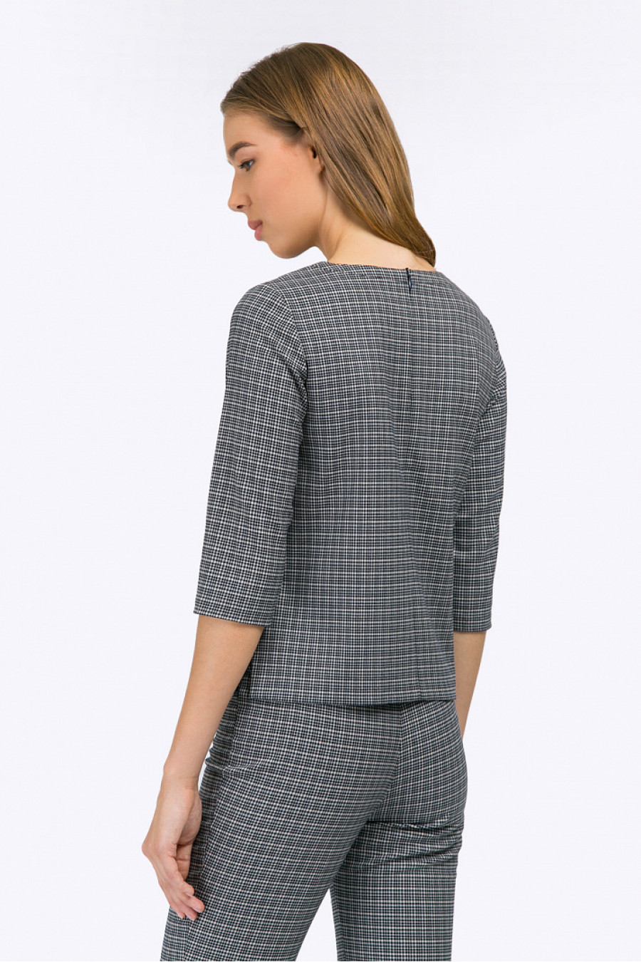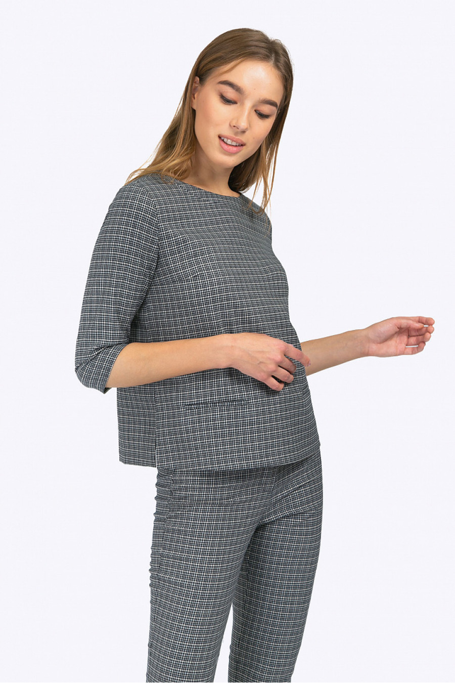 Лаконичная офисная блуза стильного меланжевого тона - прекрасный выбор для создания универсальных рабочих образов. С черными, красными, белыми деловыми брюками или юбкой-карандаш стильный сет будет безупречен! Уместны сдержанные аксессуары. Образ на фото дополнен брюками D052-stif . Рост фотомодели 175 см.