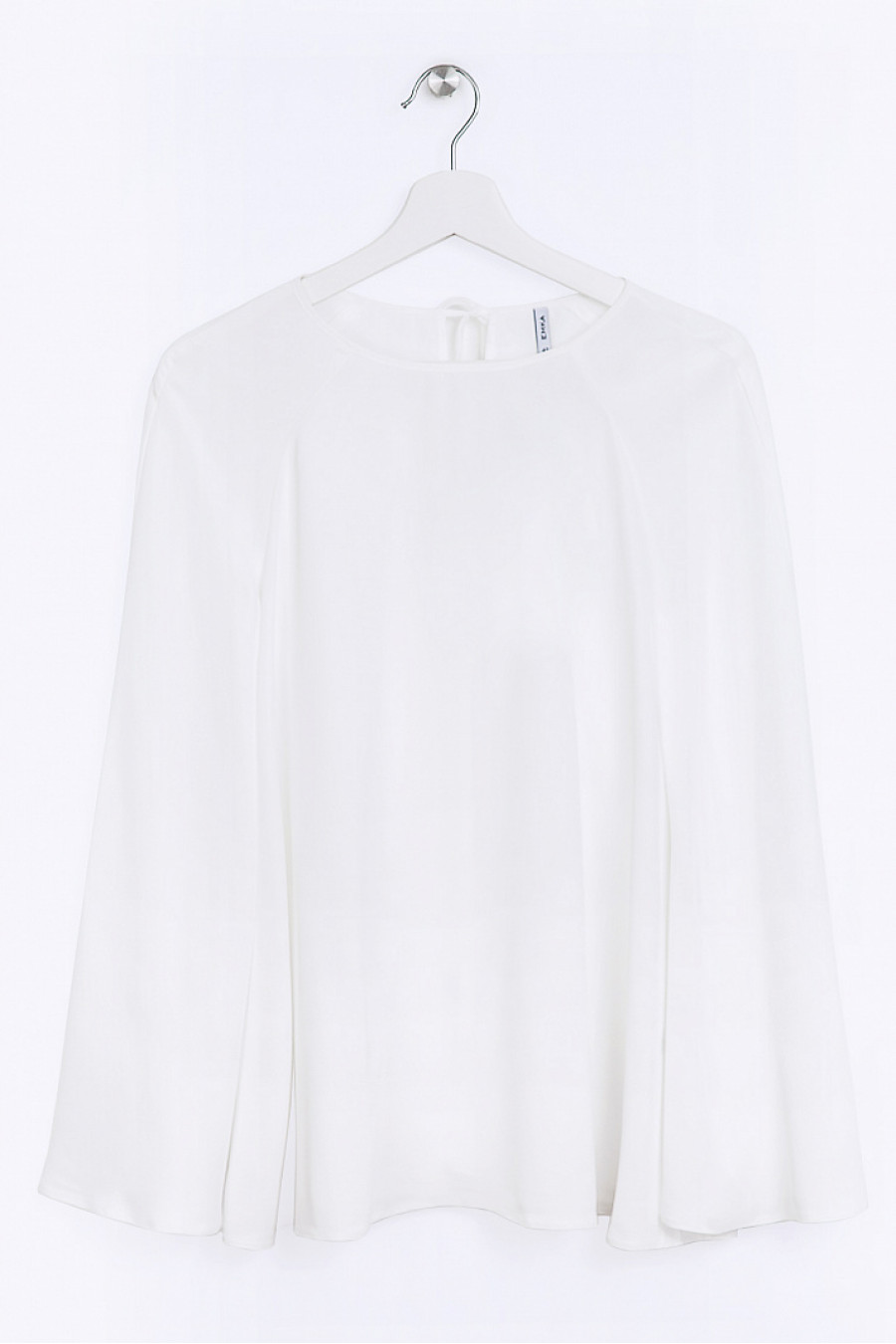 Блузка А-силуэта с широкими рукавами. Модель из легкой ткани, белого цвета. Блузка хорошо сидит, не сковывая движения. Прекрасно дополнит деловой образ или вечерний лук. Н Рост фотомодели 172 см.