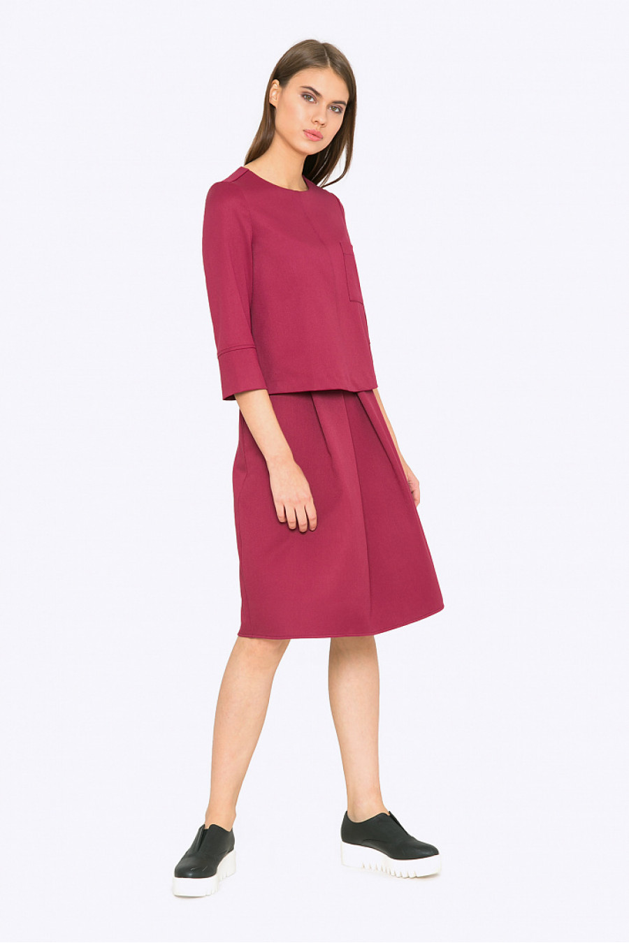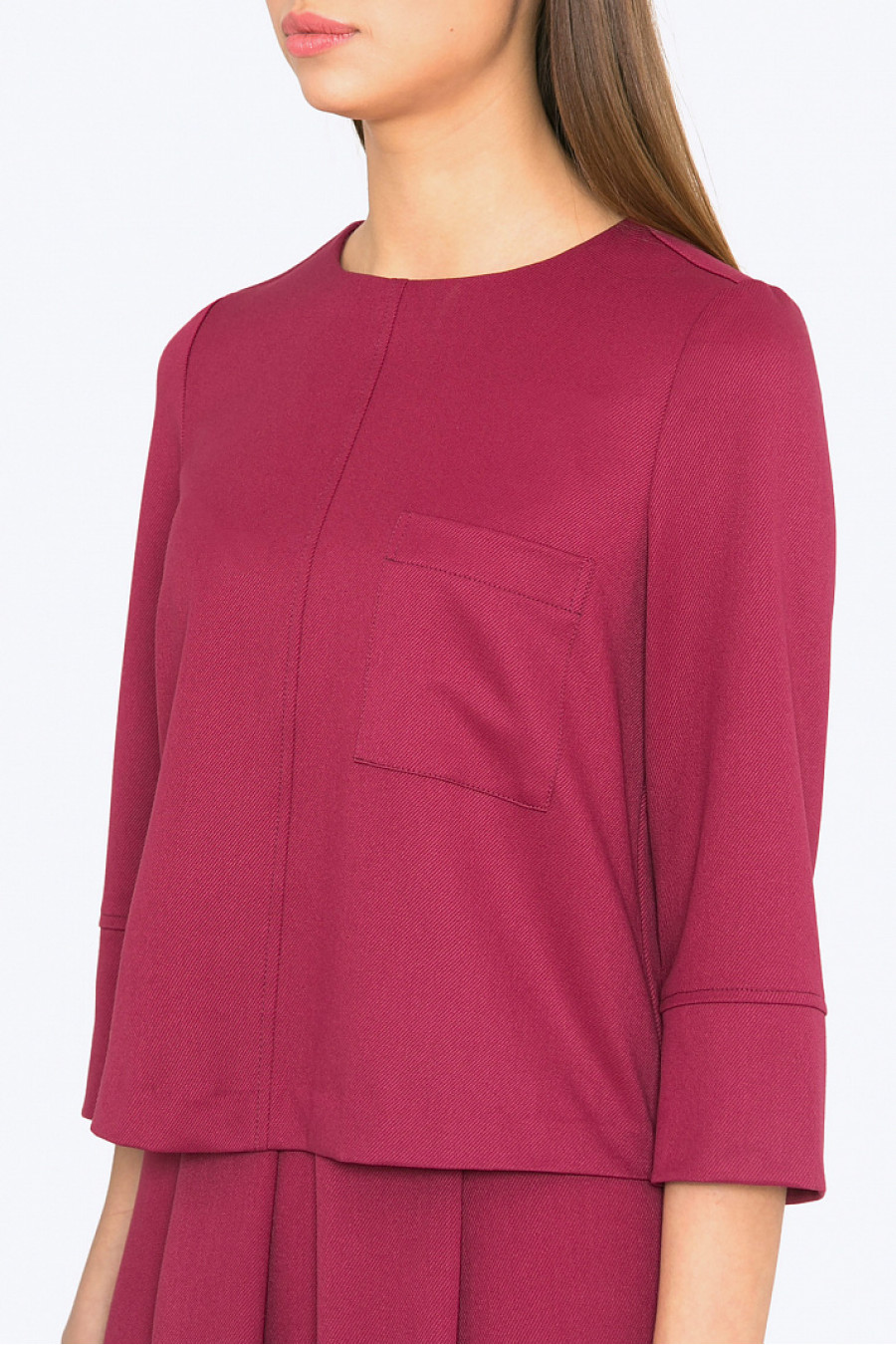 Блузка прямого кроя с накладным карманом. Ткань плотная, структурная. Застежка-молния сзади. Стильная и комфортная модель на каждый день. Рост фотомодели 178 см.
