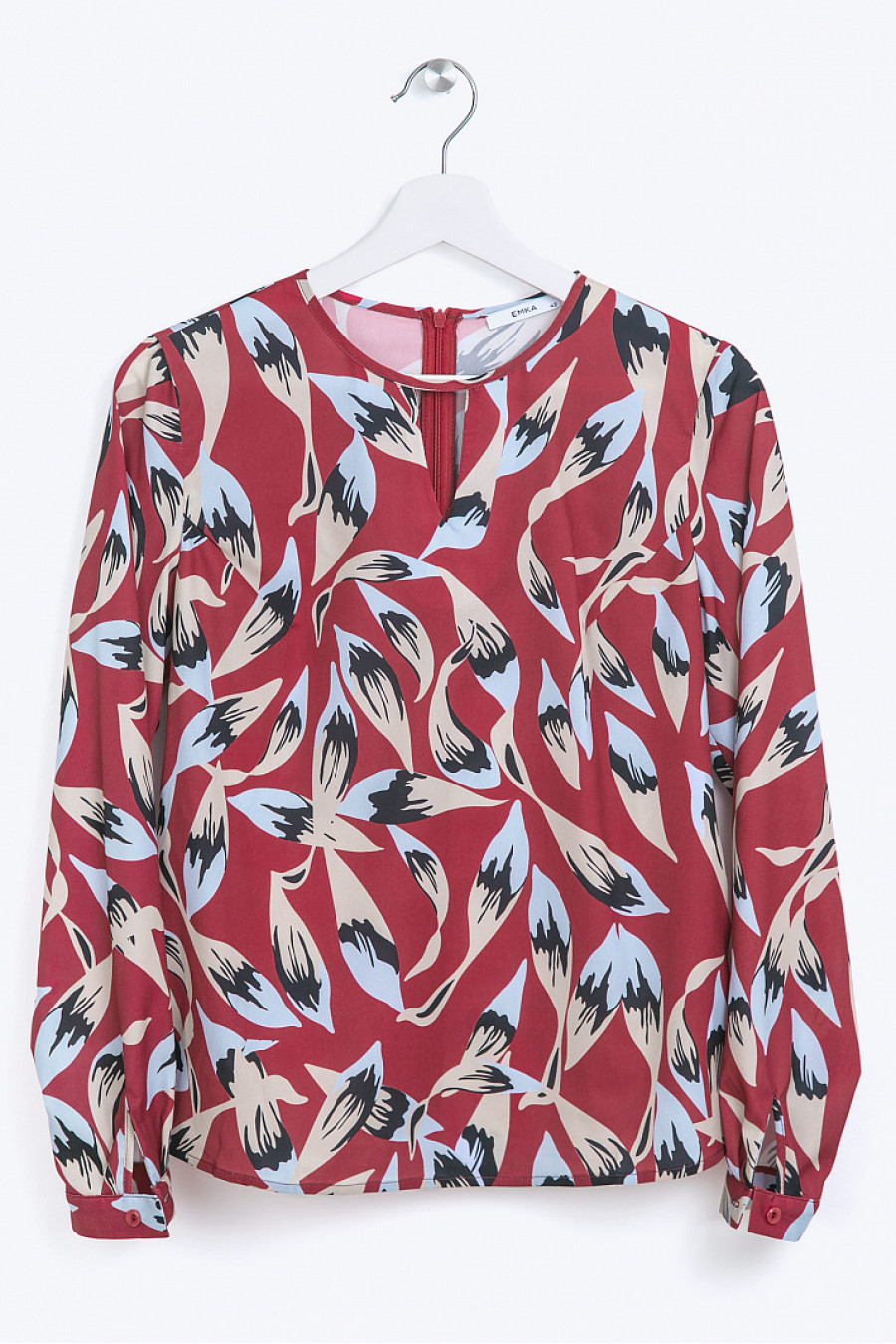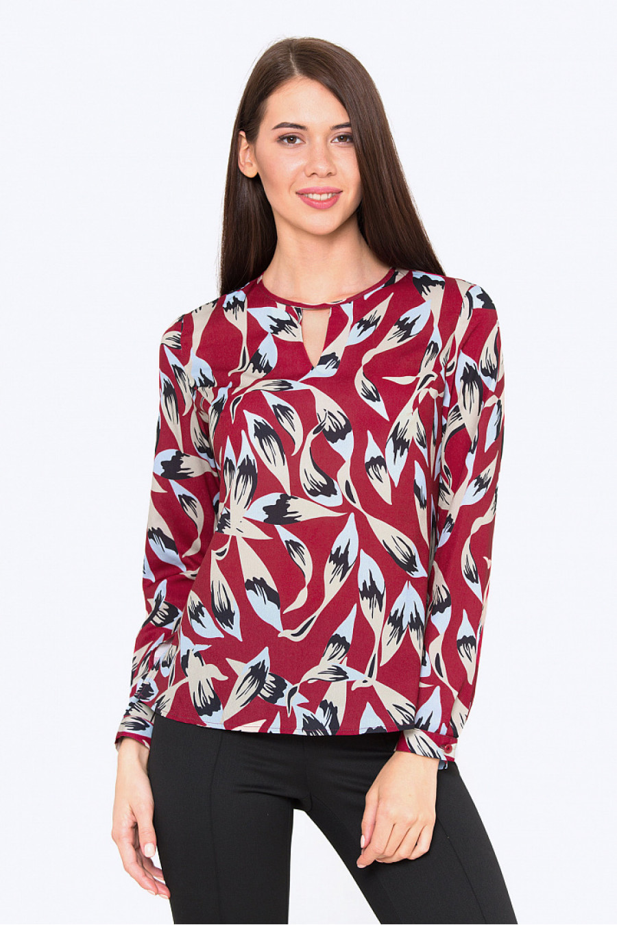 Блузка с V-образным вырезом. Модель прямого кроя. Рукава длинные на манжетах.Ткань легкая с цветочным принтом. Стильная блузка для создания делового образа. Рост фотомодели 172см.