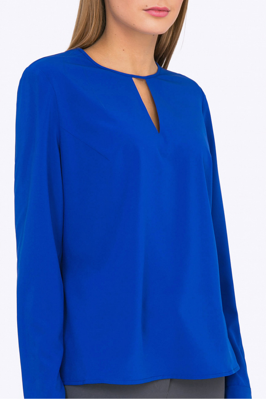Эстетичная блуза яркого оттенка незабудка - отличный выбор для создания романтичного вечернего образа (с юбкой - макси из богатой ткани) или повседневного делового look-a ( с юбкой-карандаш или офисными брюками- как на фото). Совершенные линии дизайна обеспечивают прекрасную посадку на фигурах любого типа. Гармоничная линия ворота, подчеркнутая тонкой планочкой и красивым вырезом спереди - подчеркнут красоту шеи, элегантные манжеты - привлекут внимание к ладоням. Плотная, но мягкая смесовая ткань с содержанием вискозы проста в уходе и приятна в носке. Образ на фото дополнен Брюками D067-djoset. Рост фотомодели 176 см.