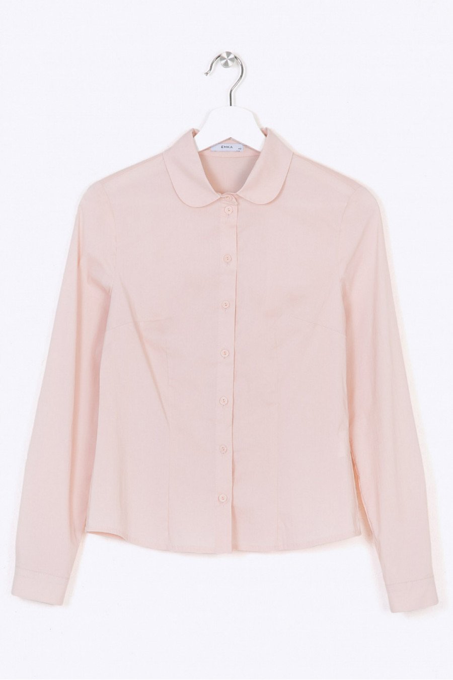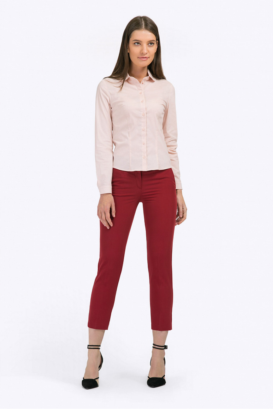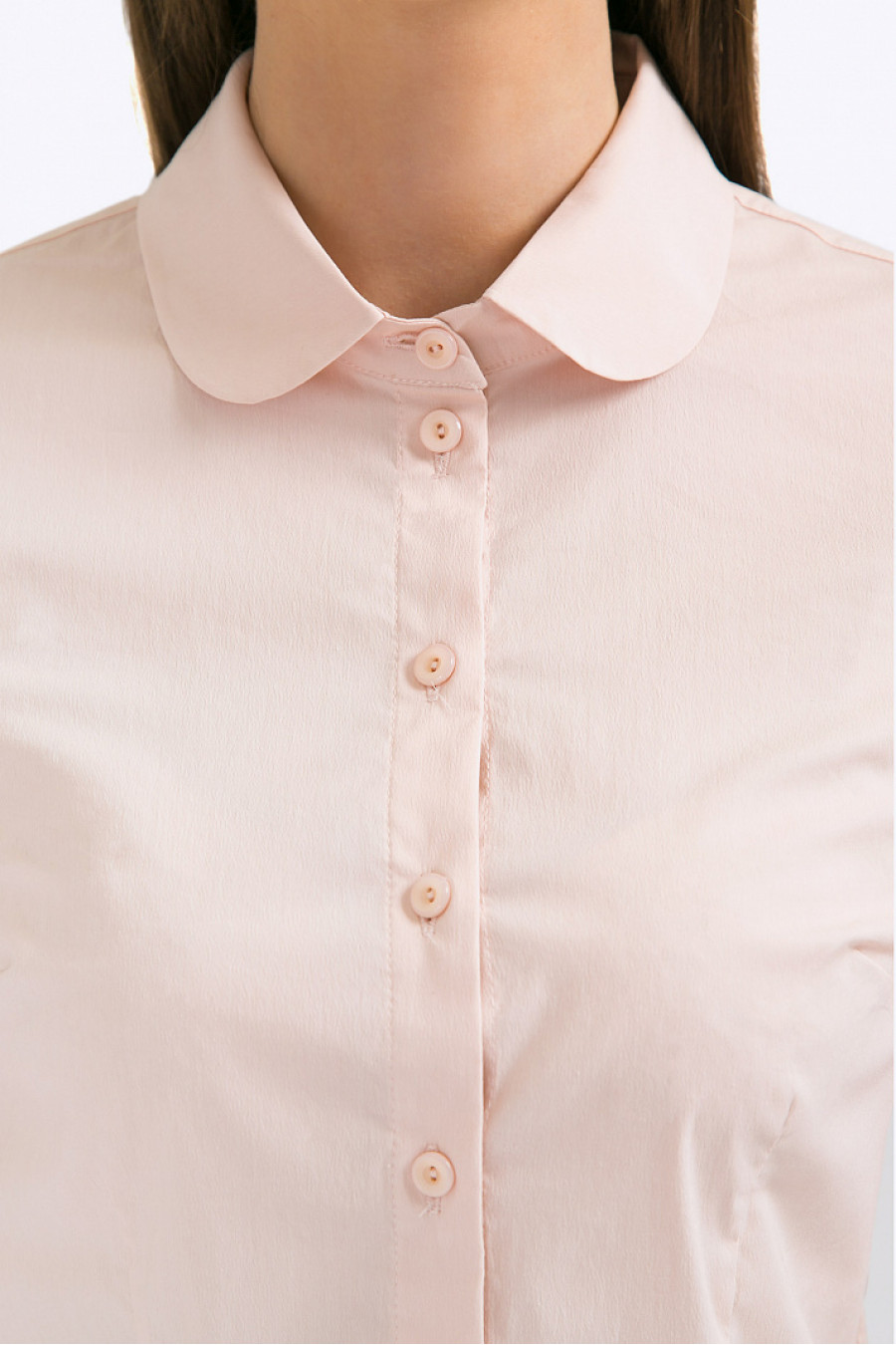 Строгая офисная блузка из нежно-розового стрейтч-коттона. Модель