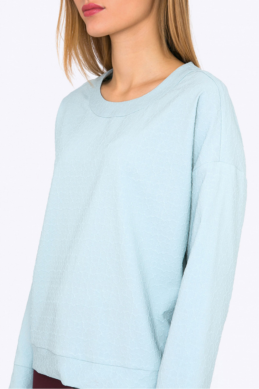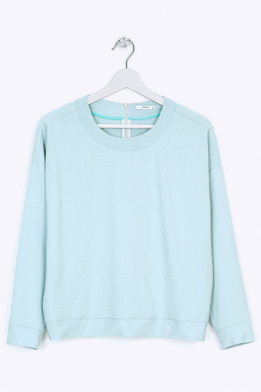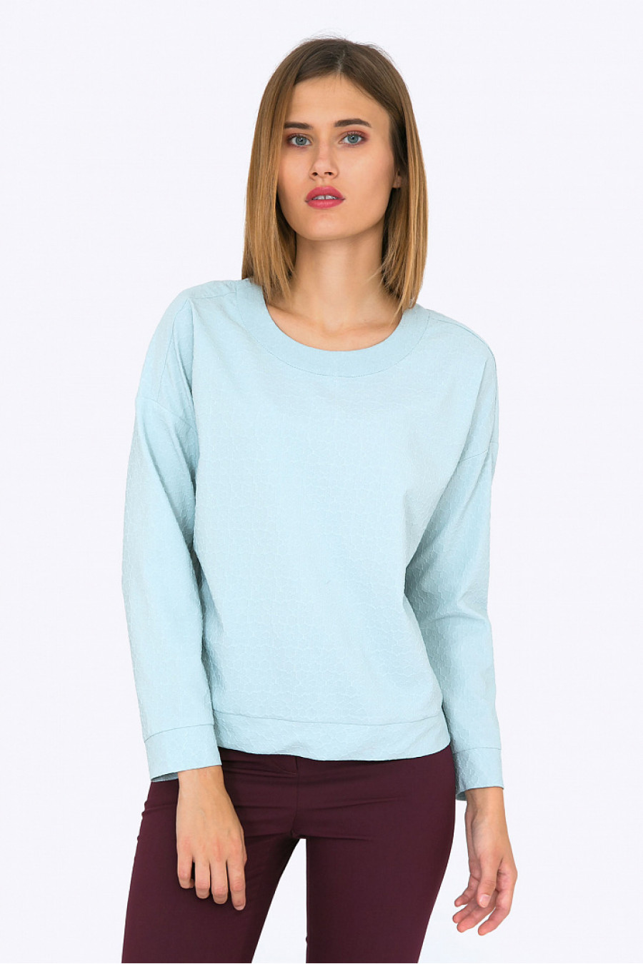 Легкий свитшот из структурной ткани. Застежка-молния на спинке.Свитшот является крайне универсальной одеждой. Его легко применять для создания и элегантных, и деловых, и торжественных образов. Рост фотомодели 175 см.